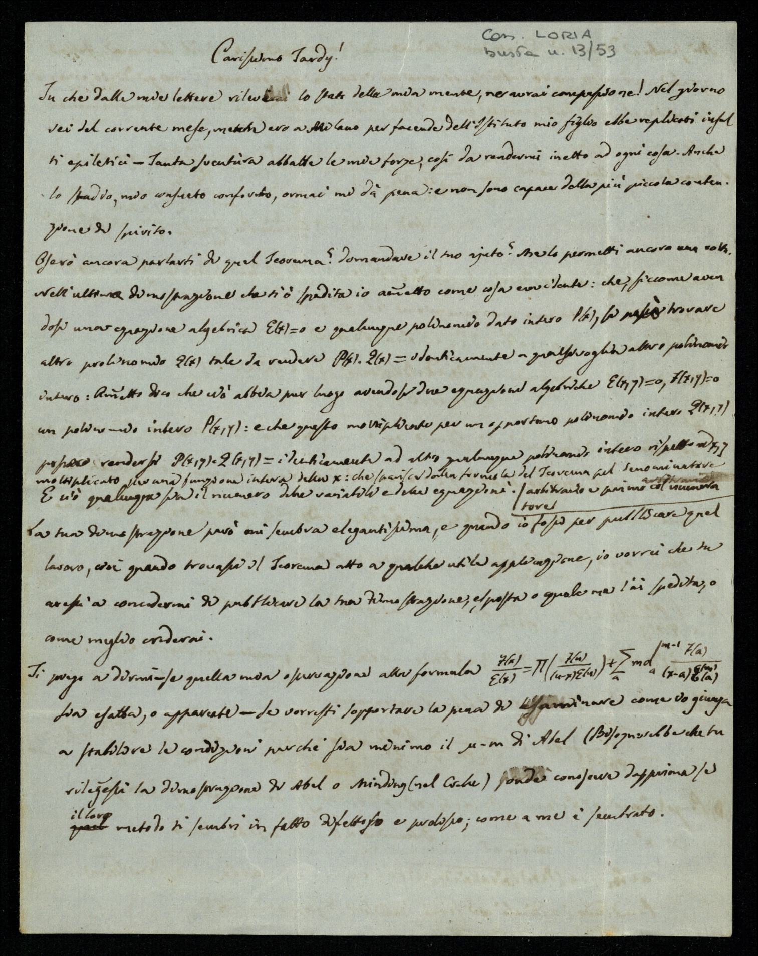 Titolo: Carteggio Placido Tardy