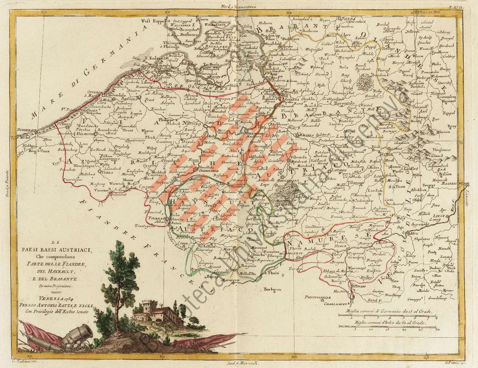 Titolo: Li *Paesi Bassi austriaci che comprendono parte delle Fiandre, del Haynault, e del Brabante di nuova projezione
