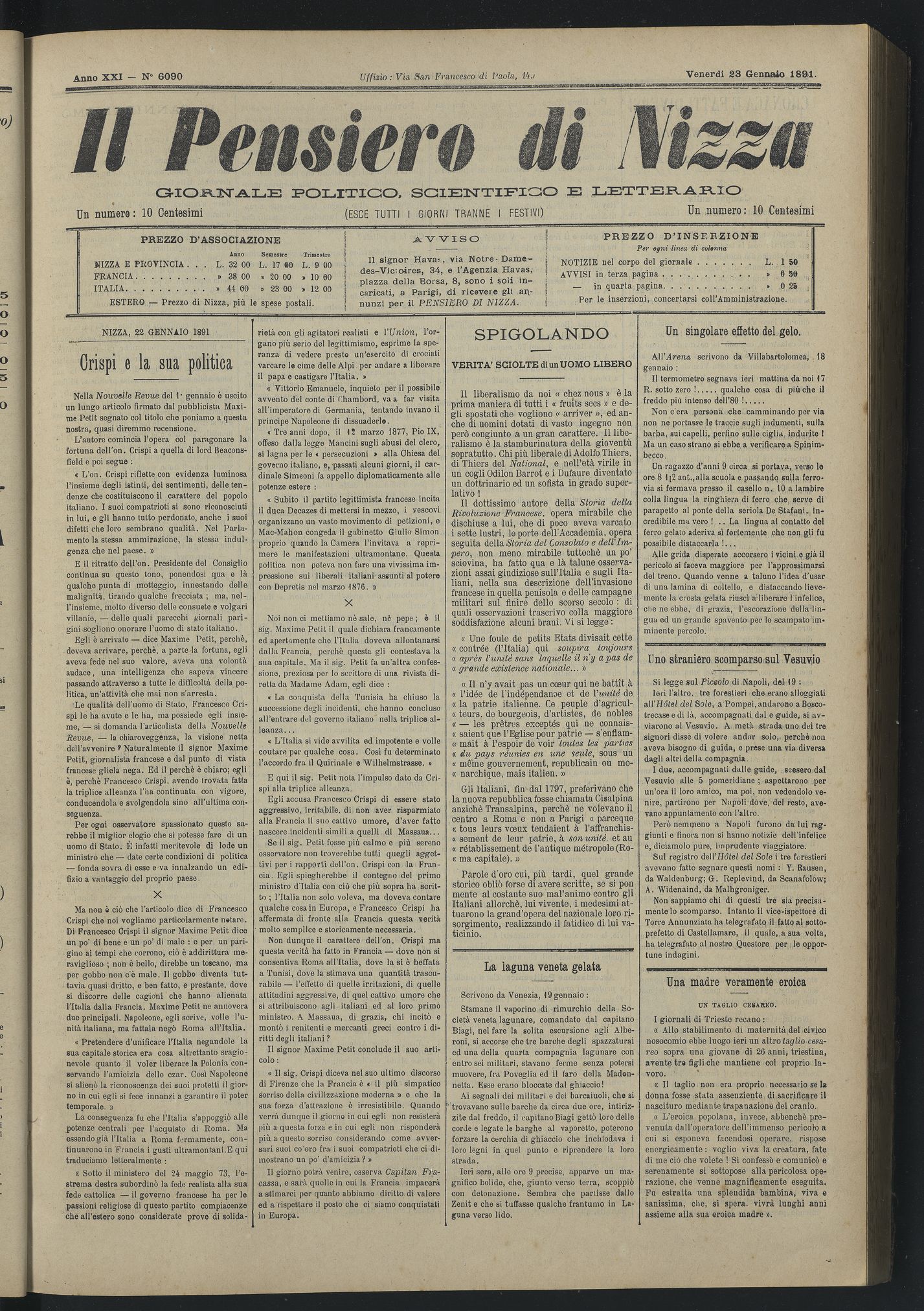 Titolo: Il Pensiero di Nizza : giornale politico, scientifico e letterario