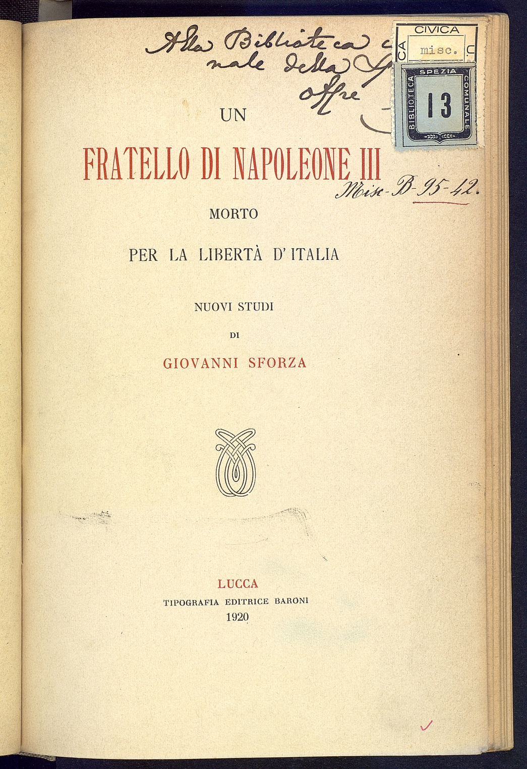 Titolo: Un fratello di Napoleone III morto per la liberta' D'Italia