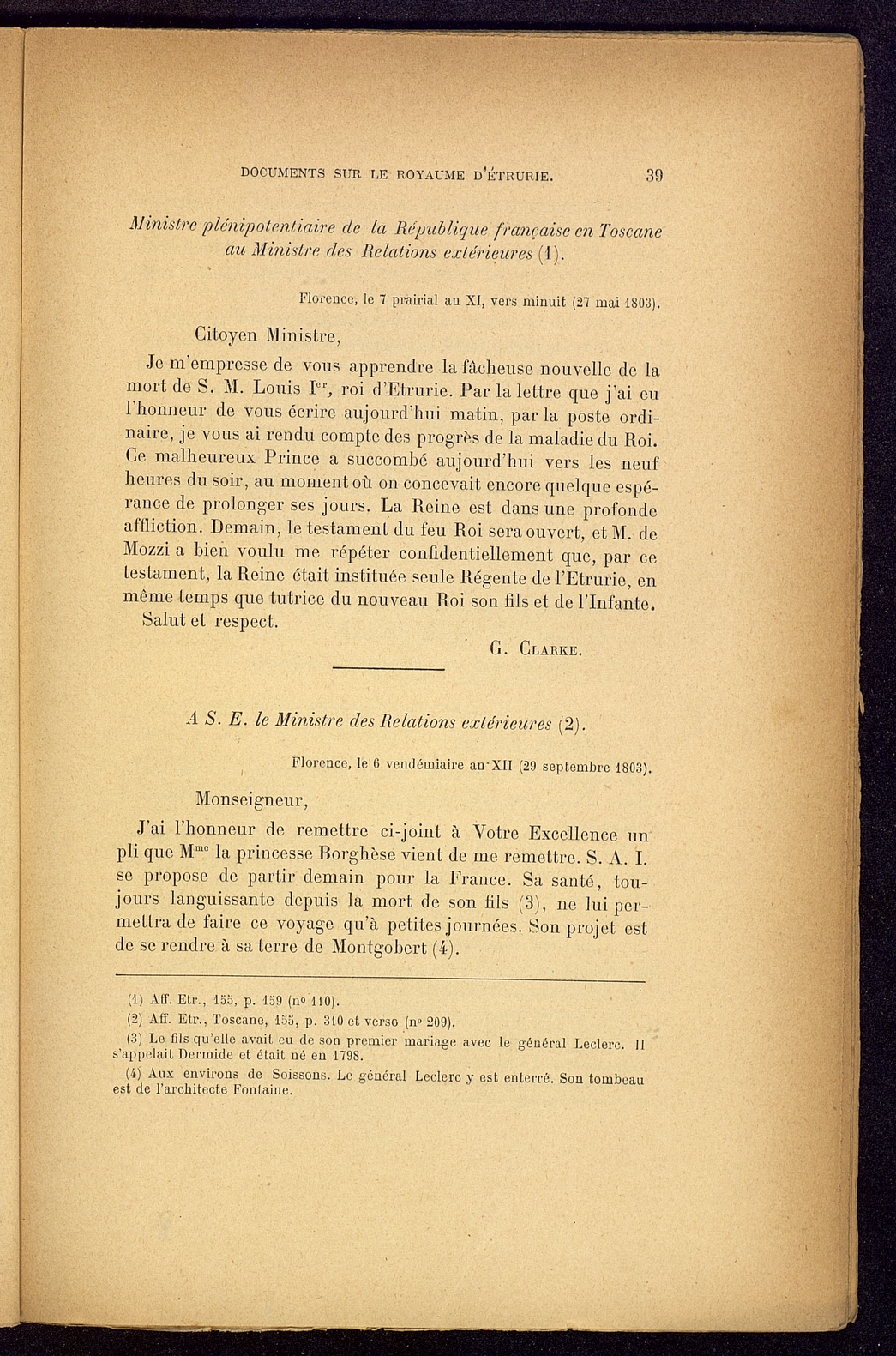 Titolo: Documents sur le Royaume d'Etrurie (1801-1807)