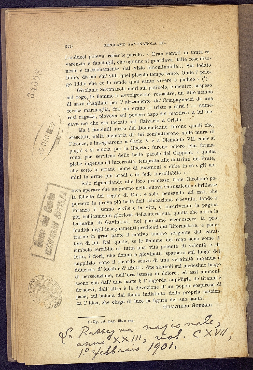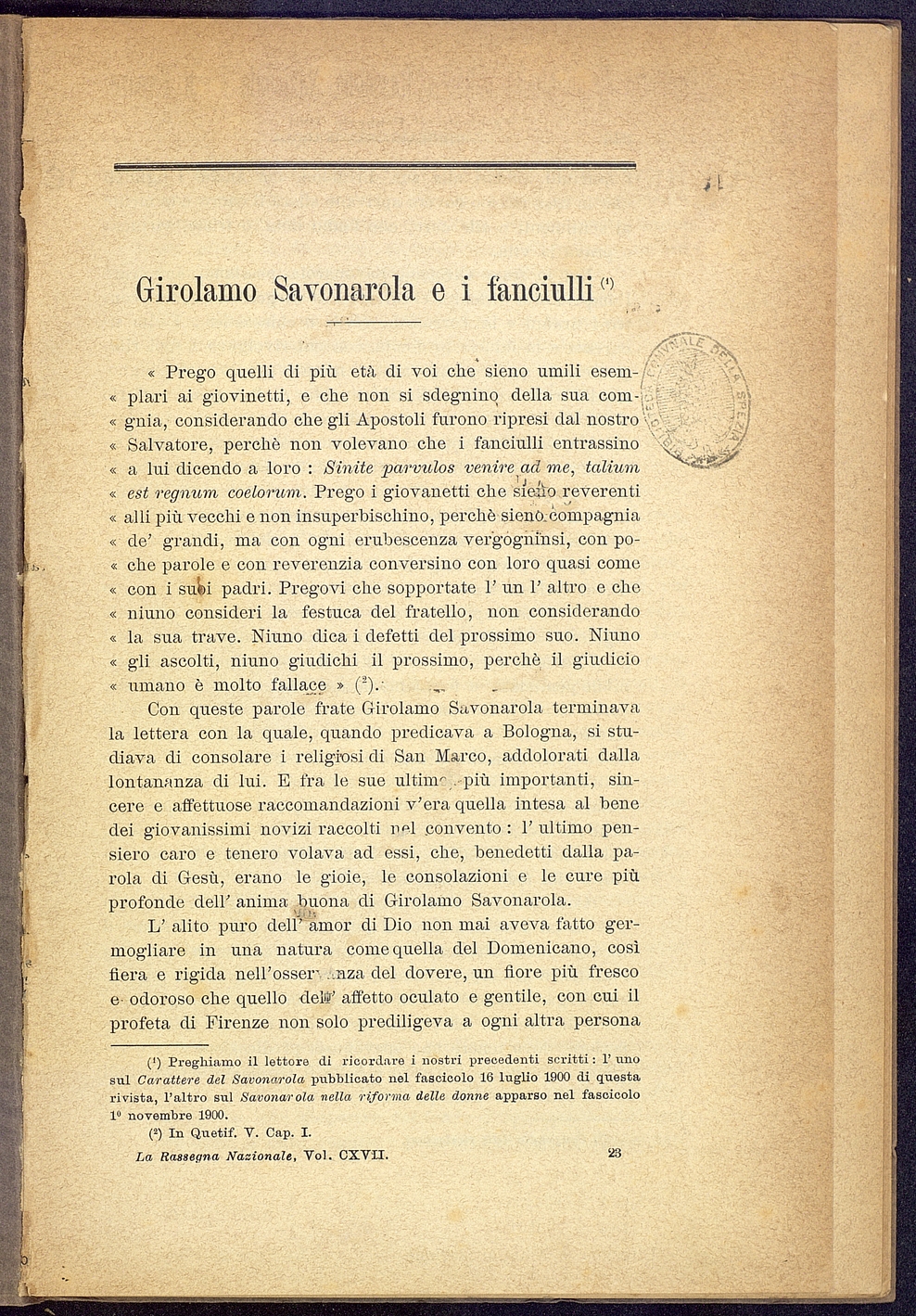 Tipo documento: TestoLivello bibliografico: Monografia Titolo: Girolamo Savonarola e i fanciulliAutore: Gnerchi G.Data di pubblicazione: 1901Identificativo: MXS081005ARK: ark:/64639/MXS081005ARK: ark:/64639/MXS081005/38250