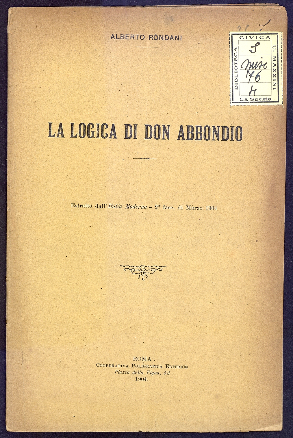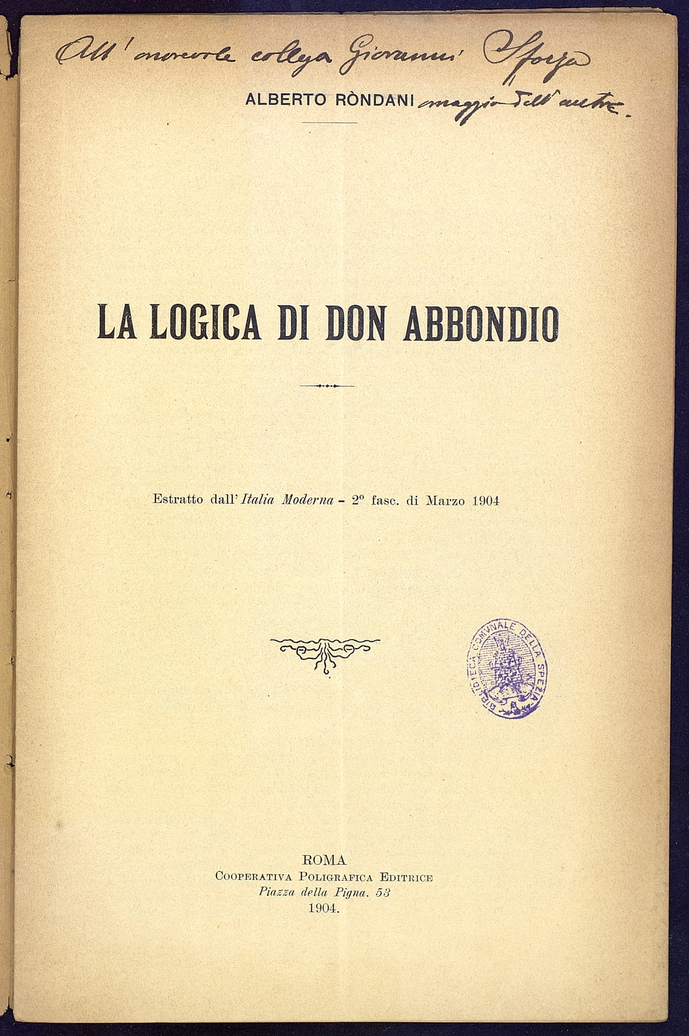 Tipo documento: TestoLivello bibliografico: Monografia Titolo: La logica di Don AbbondioAutore: Rondani A.Data di pubblicazione: 1904Identificativo: MXS076004ARK: ark:/64639/MXS076004ARK: ark:/64639/MXS076004/38099