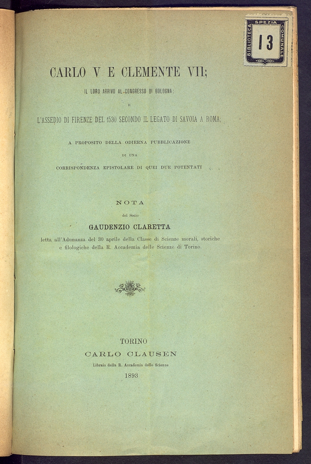 Titolo: Carlo V e Clemente VII ecc.