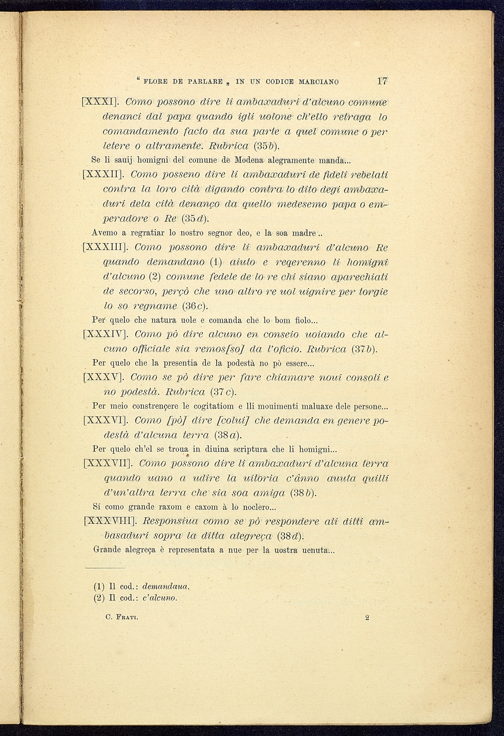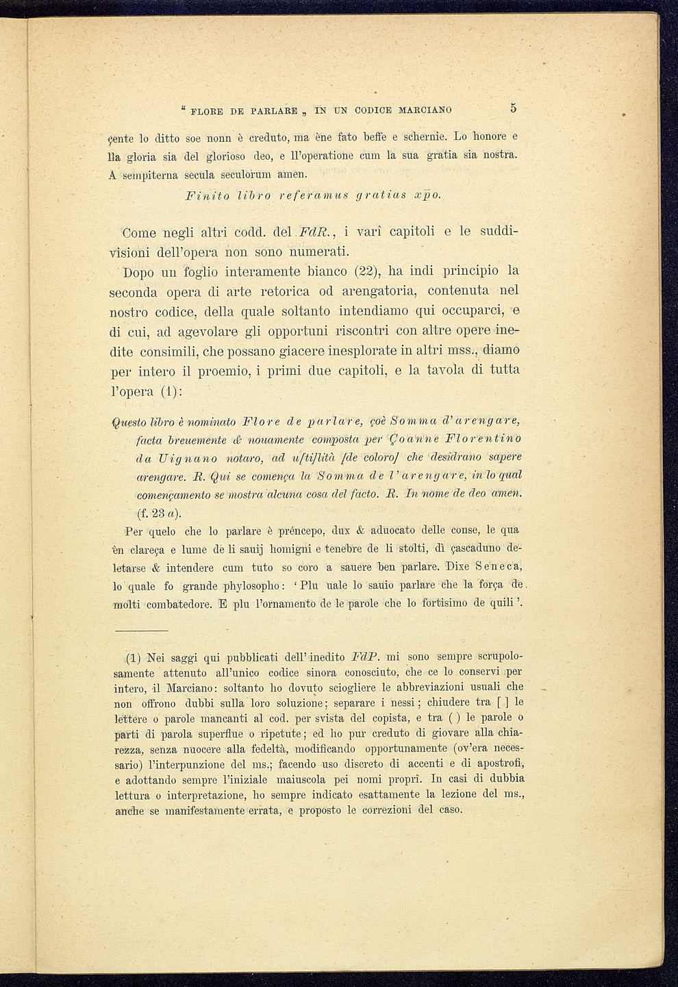 Titolo: "Flore de parlare" o"Somma d'arengare" attribuita a G. Fiorentino da Vignano