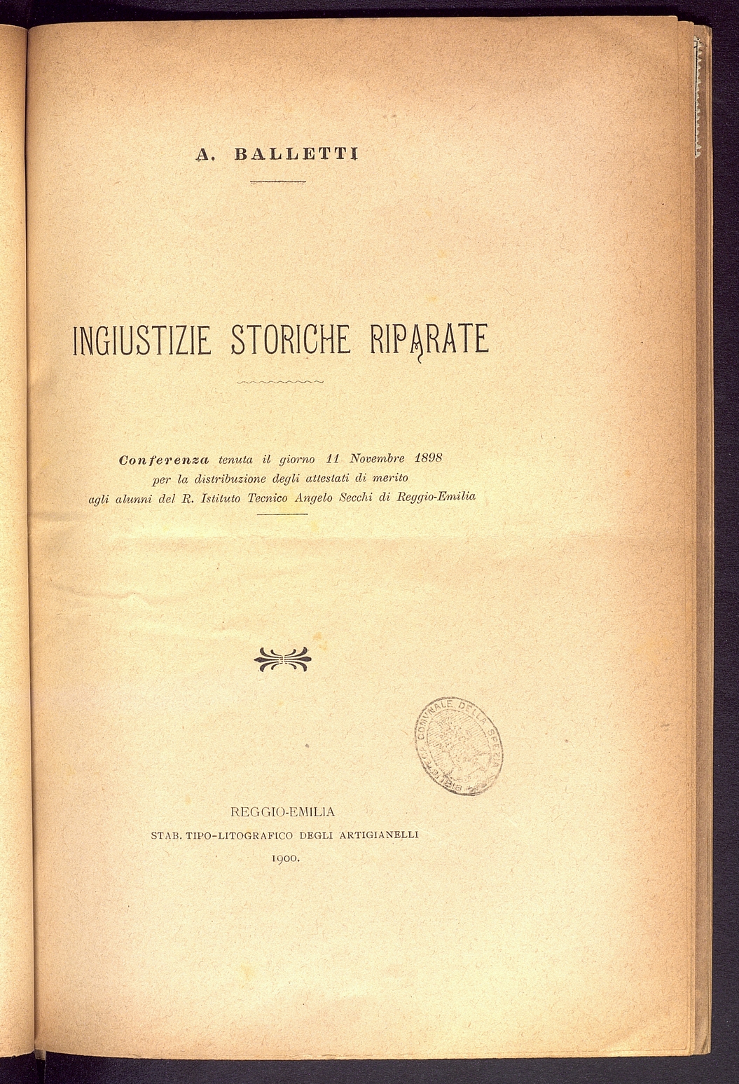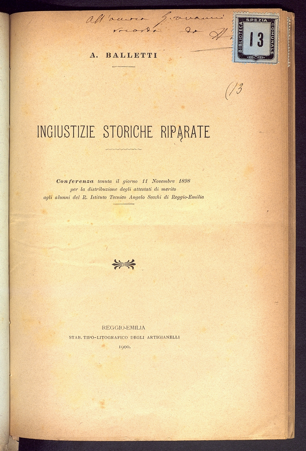 Tipo documento: TestoLivello bibliografico: Monografia Titolo: Ingiustizie storiche riparateAutore: Balletti A.Data di pubblicazione: 1900Identificativo: MAZZMXS021013ARK: ark:/64639/MAZZMXS021013ARK: ark:/64639/MAZZMXS021013/3821