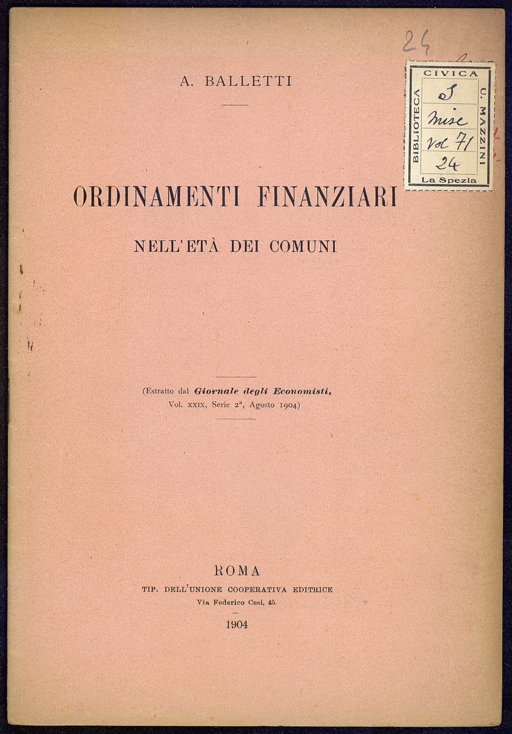 Tipo documento: TestoLivello bibliografico: Monografia Titolo: Ordinamenti finanziari dei ComuniAutore: Balletti A.Data di pubblicazione: 1904Identificativo: MXS071024ARK: ark:/64639/MXS071024ARK: ark:/64639/MXS071024/37962