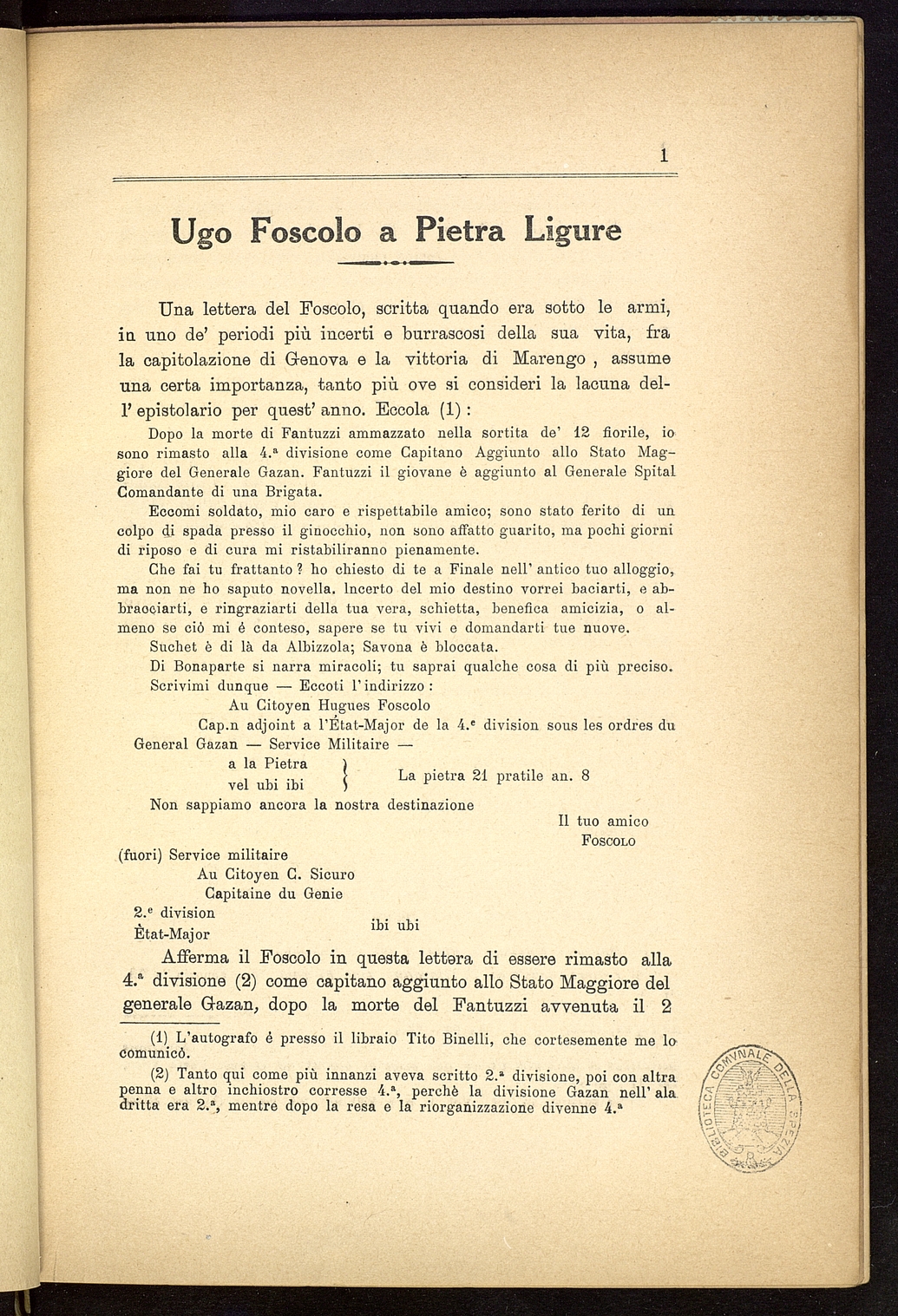 Tipo documento: TestoLivello bibliografico: Monografia Titolo: Ugo Foscolo a Pietra LigureAutore: Neri, AchilleData di pubblicazione: 1911Identificativo: MAZZM08100131ARK: ark:/64639/MAZZM08100131ARK: ark:/64639/MAZZM08100131/828