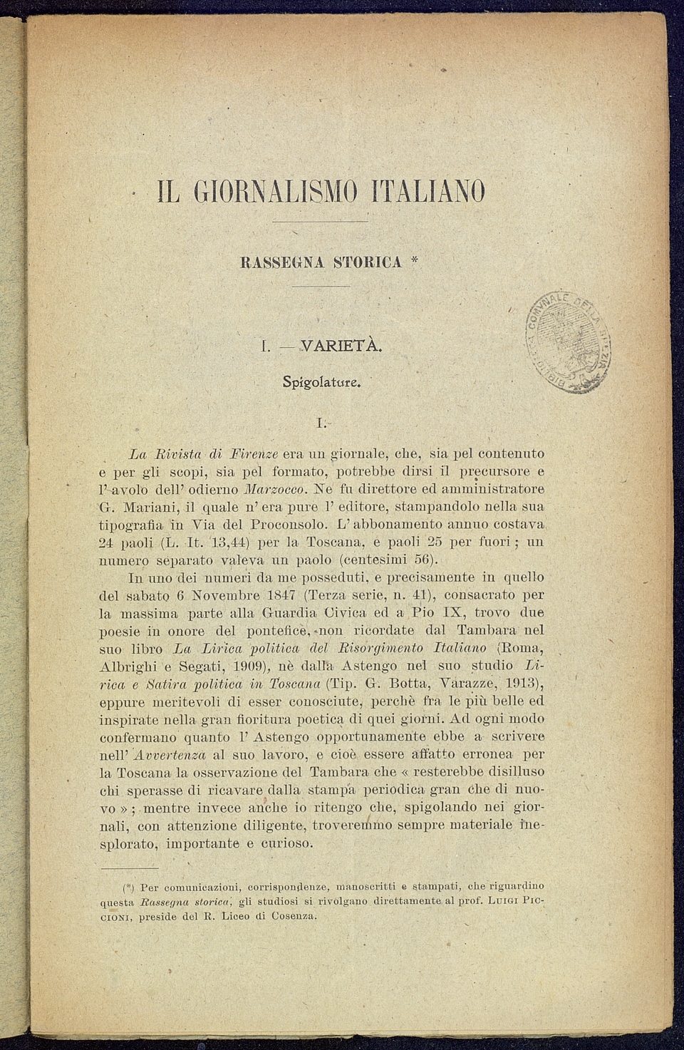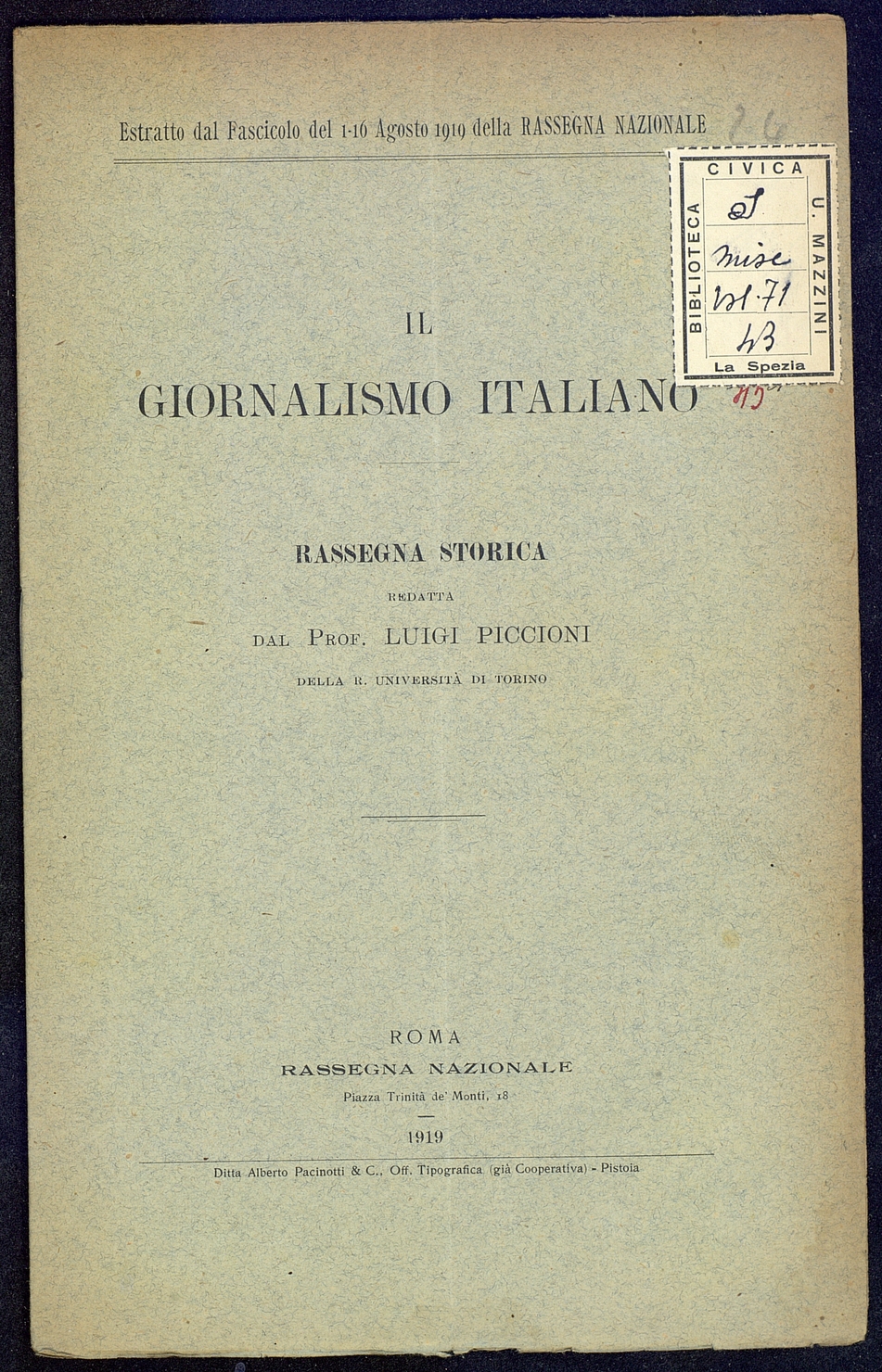 Titolo: Il Giornalismo Italiano fascicolo di Agosto della Rassegna Nazionale