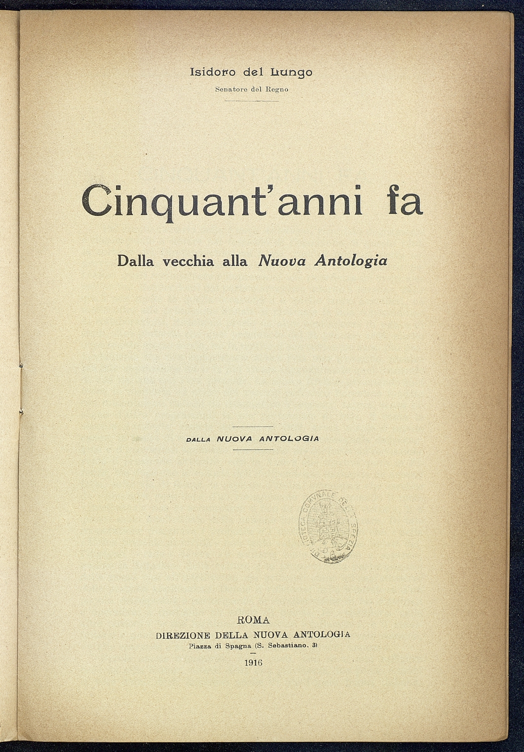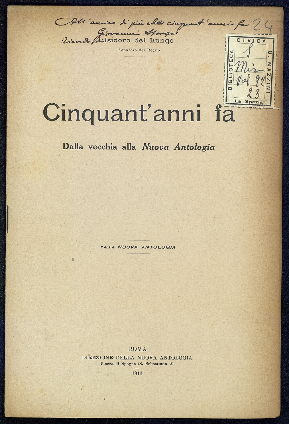 Titolo: Cinquant'anni fa dalla vecchia alla Nuova Antologia