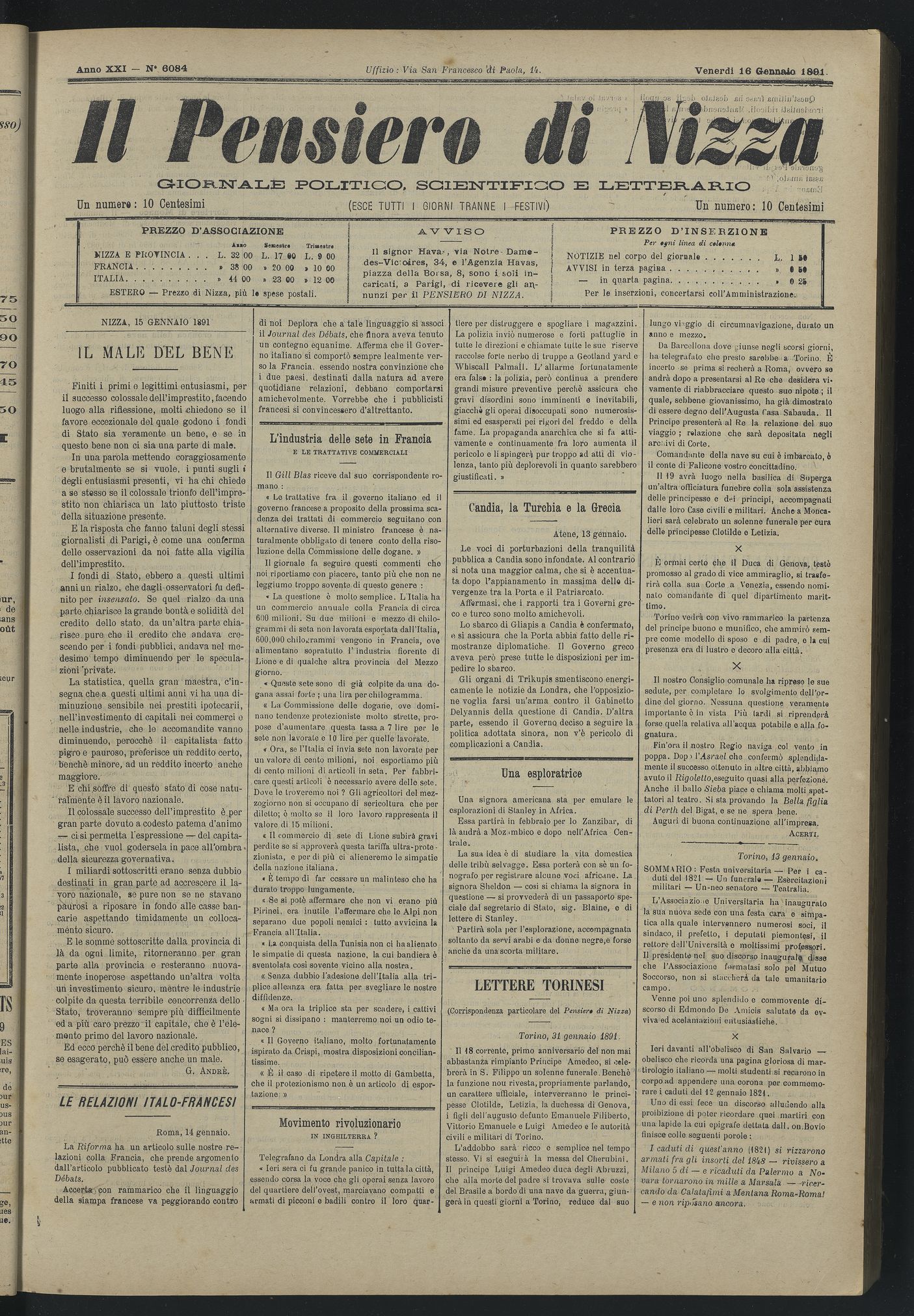 Titolo: Il Pensiero di Nizza : giornale politico, scientifico e letterario