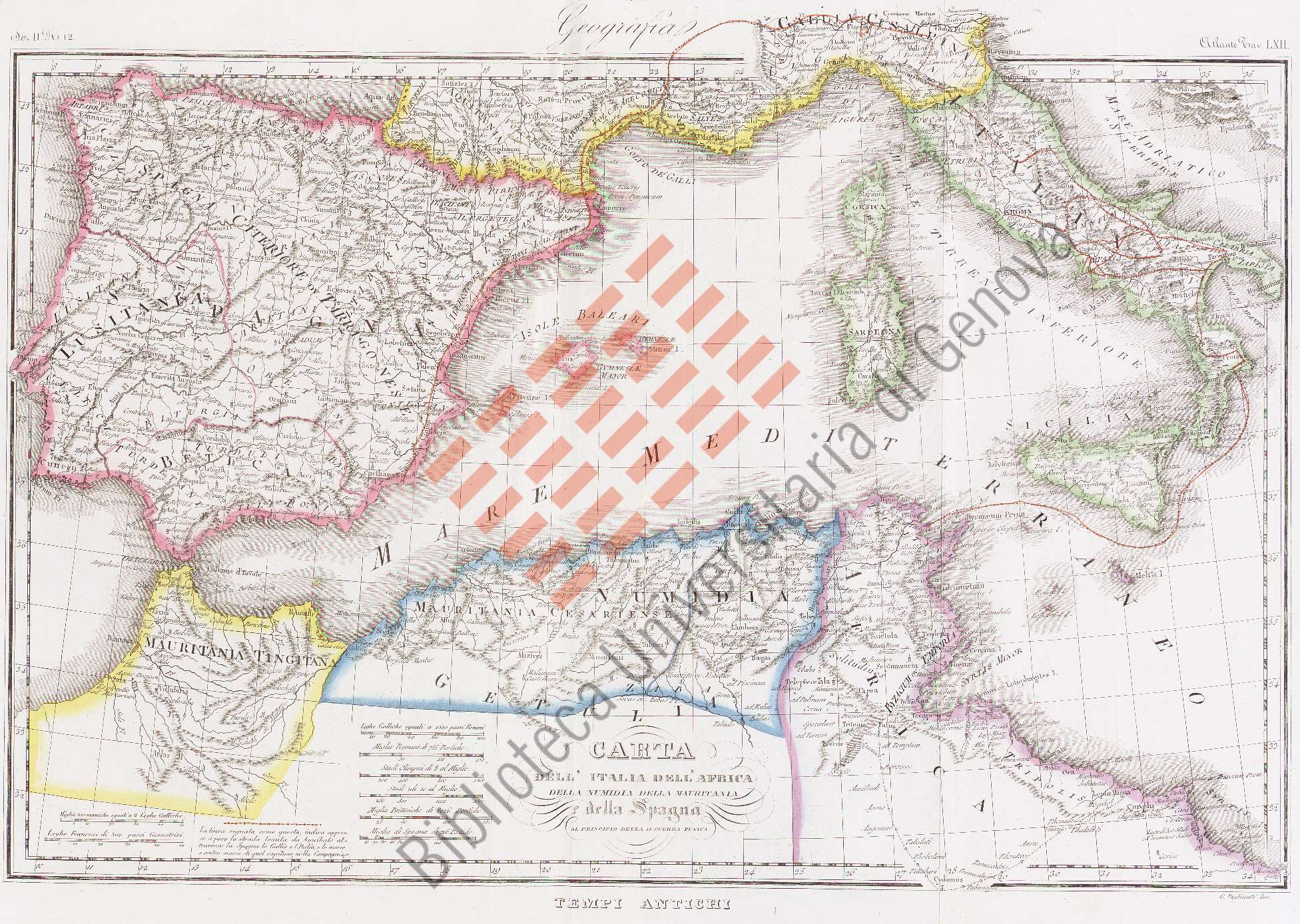 Titolo: Carta dell'Italia dell'Africa della Numidia della Muritania e della Spagna al principio della II guerra punica