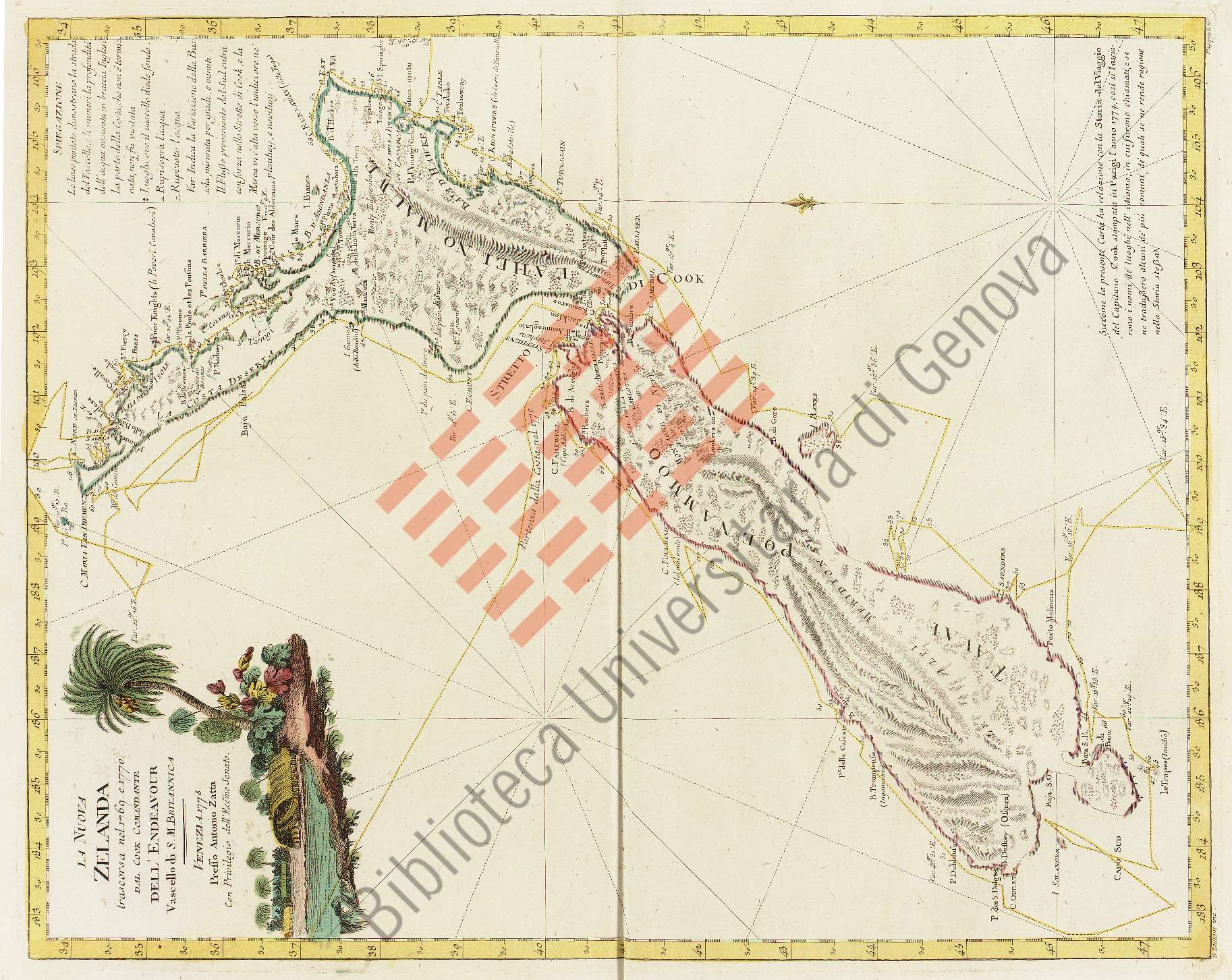 Titolo: La *Nuova Zelanda trascorsa nel 1769 e 1770 dal Cook comandante dell'Endeavour vascello di S M. Britannica
