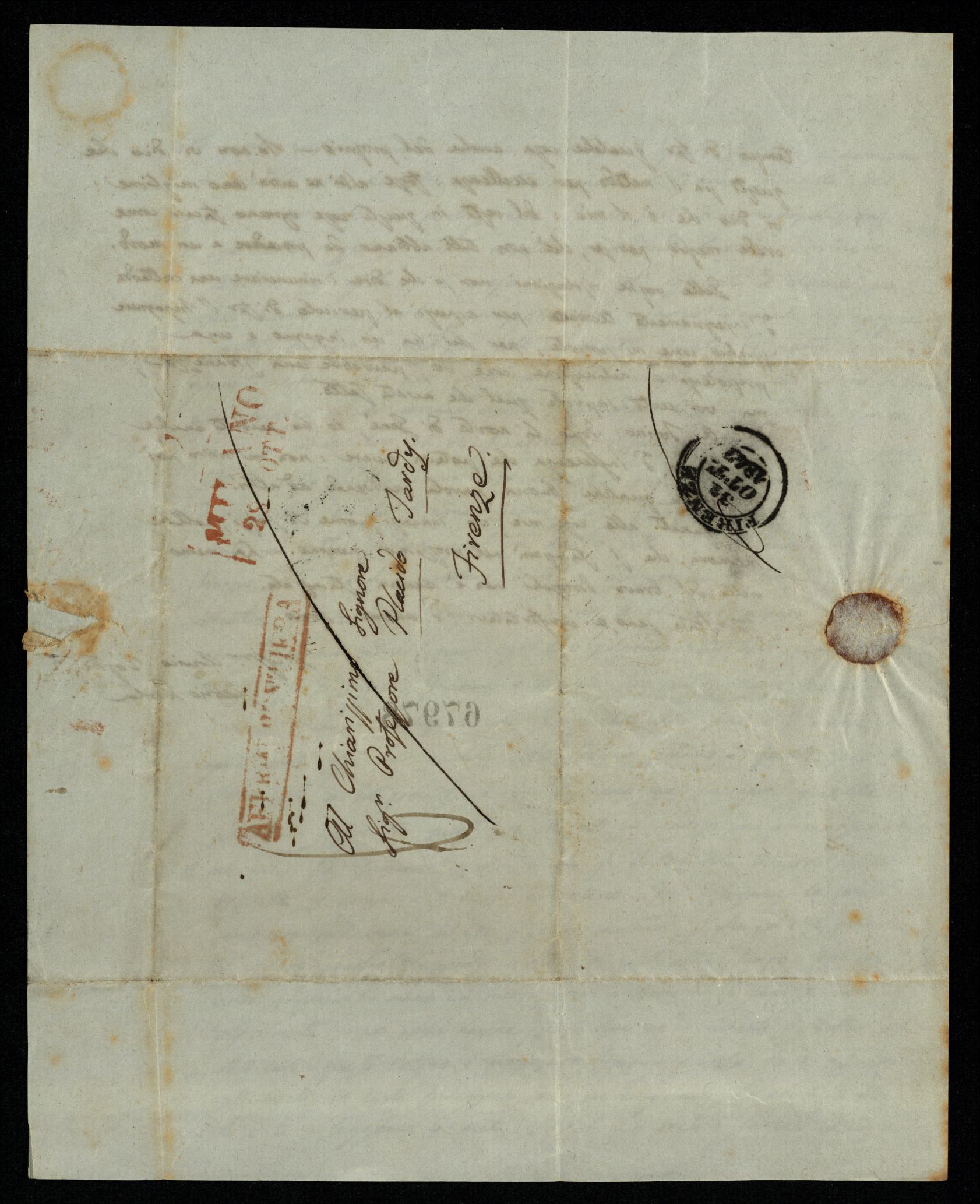 Descrizione: Bifolio su carta grigio-azzurra,indirizzo,tibri postali e tracce di ceralacca a tergo