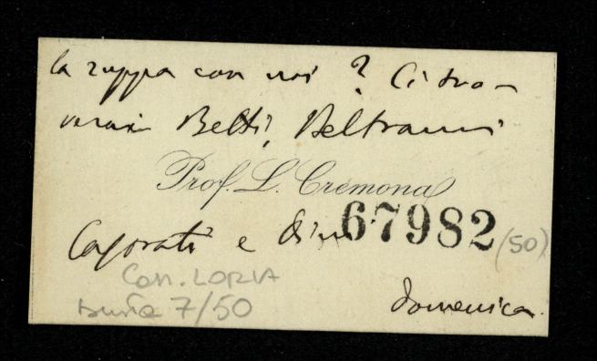 Descrizione: Biglietto da visita: Prof. Luigi Cremona