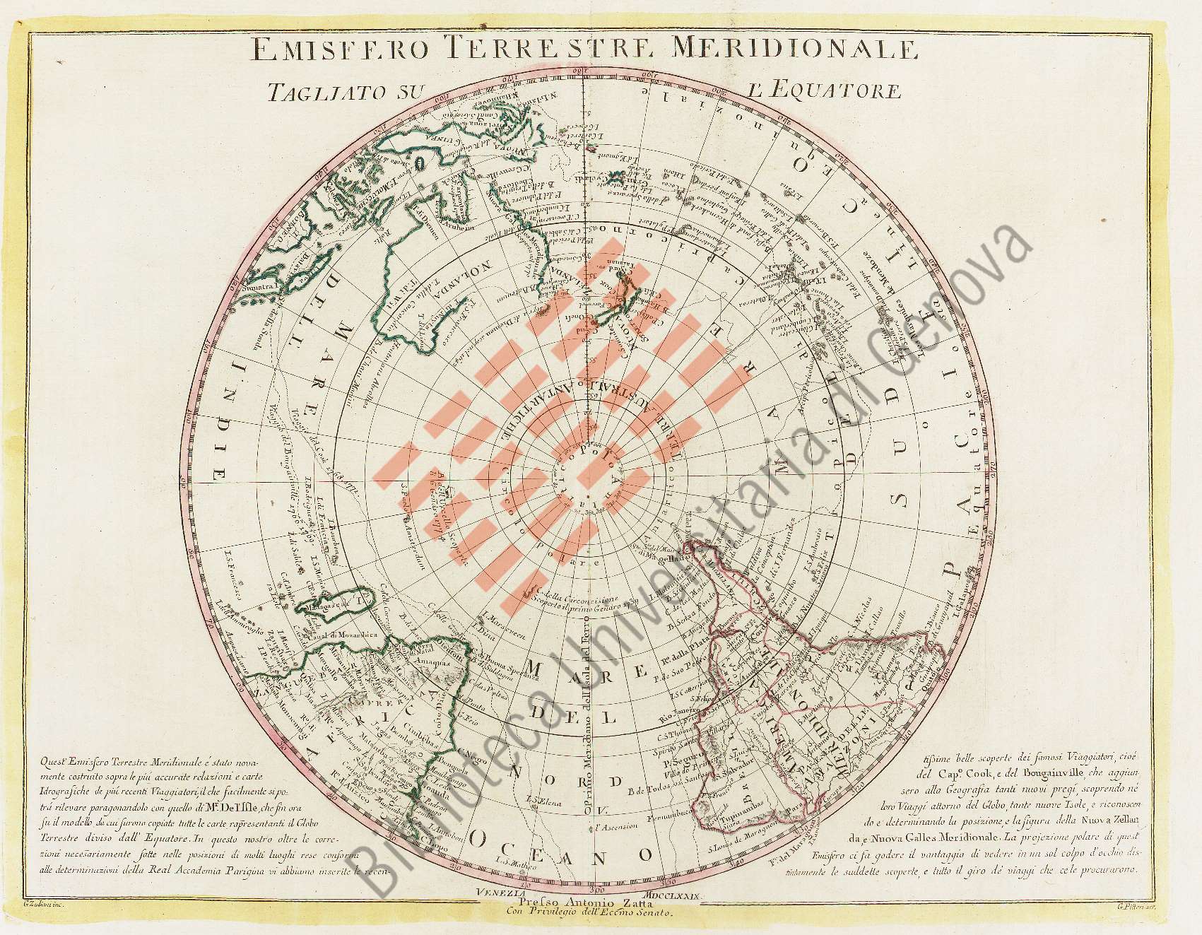 Titolo: Emisfero terrestre meridionale tagliato su l'Equatore
