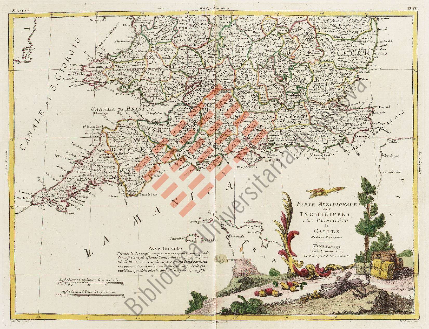 Titolo: Parte meridionale dell'Inghilterra e del Principato di Galles di nuova projezione