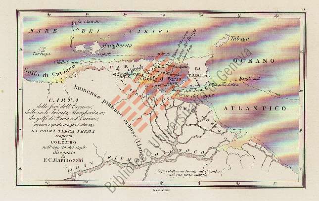 Titolo: Carta delle foci dell'Orenoco, delle isole Trinità, Margherita, ec.; dei Golfi Paria e di Curiaco, presso i quali luoghi è situata...