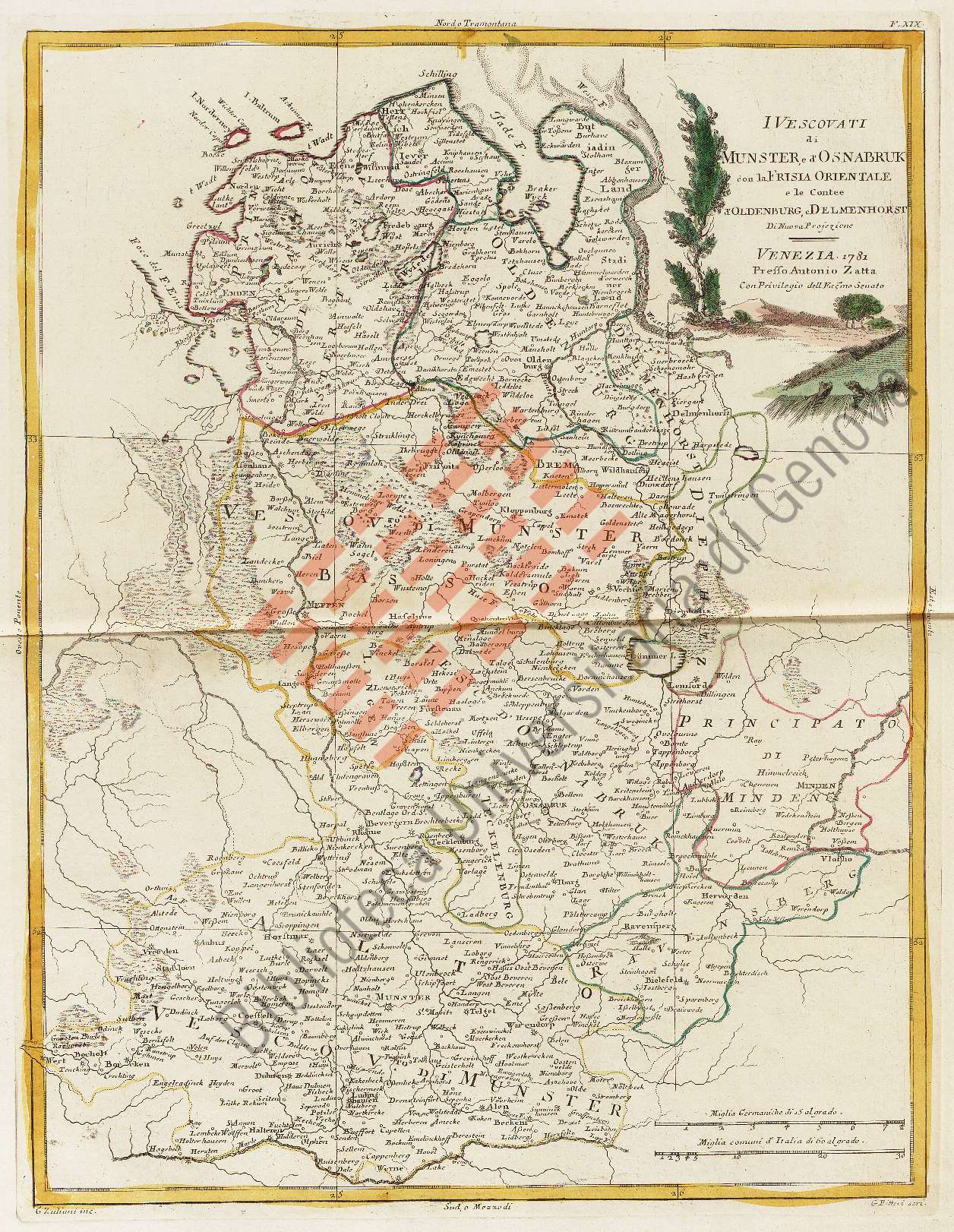 Titolo: I *vescovati di Munster, e di Osnabruk con la risia orientale e le contee d'Oldenburg, e Delmenhorst di nuova projezione