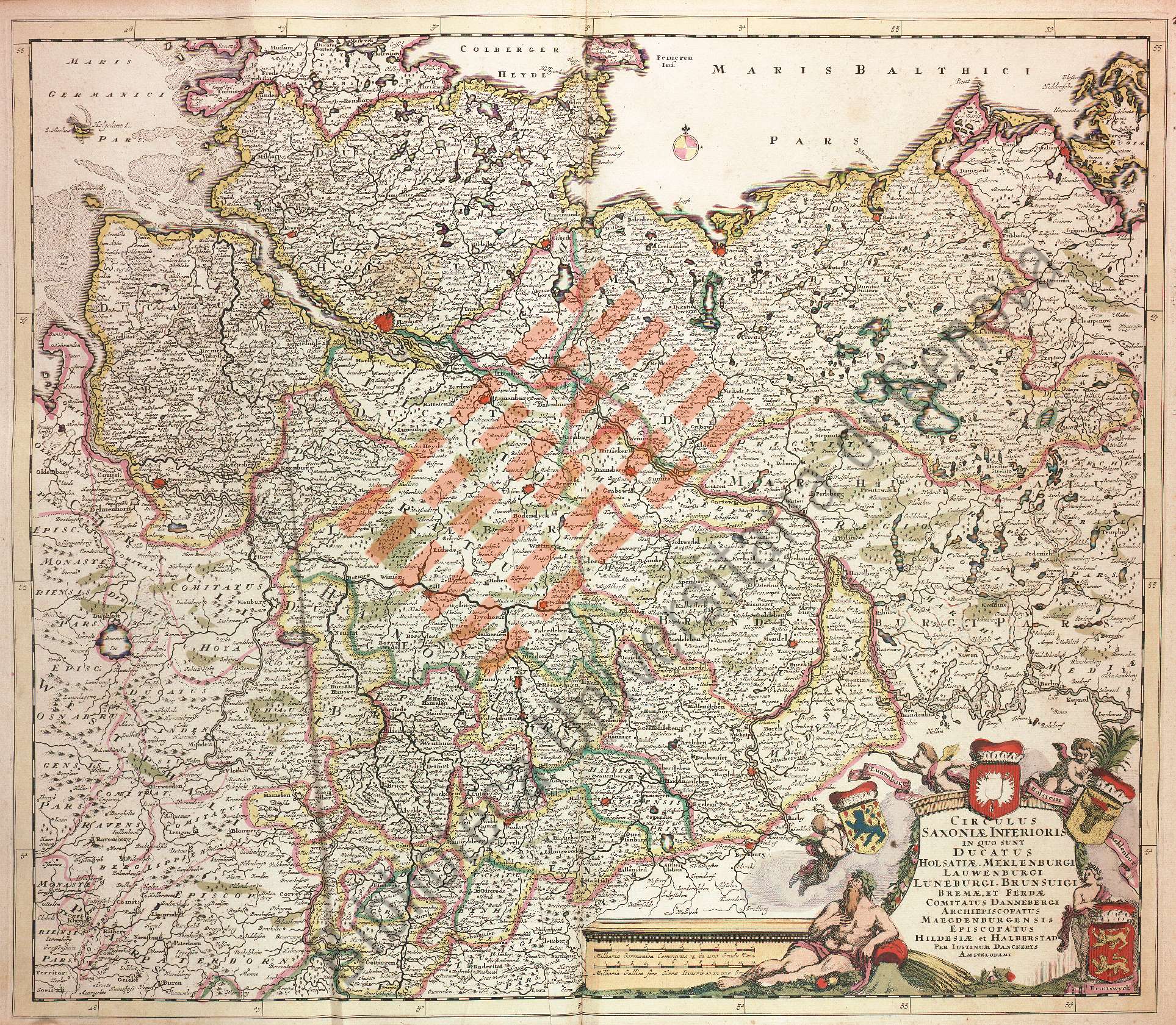 Titolo: Circulus Saxoniae Inferioris in quo sunt Ducatus Holsatiae. Meklenburgi Laurenburgi, Brunsuigi Bremae, et Ferdae...