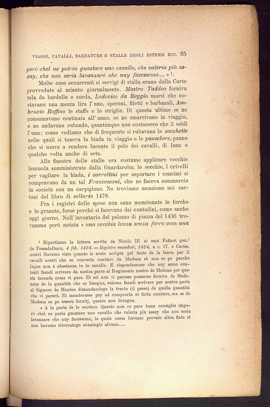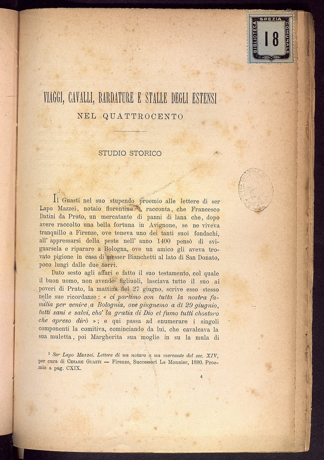 Titolo: Viaggi, cavalli, bardature e stalle degli Estensi nel 400 Studio storico
