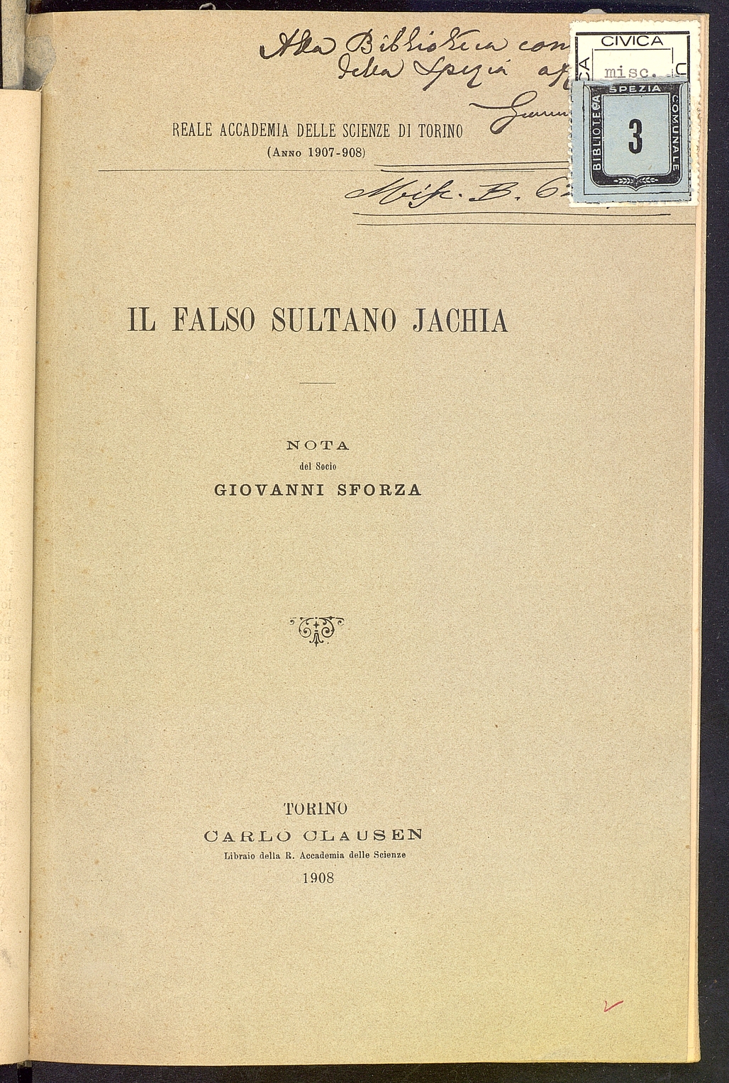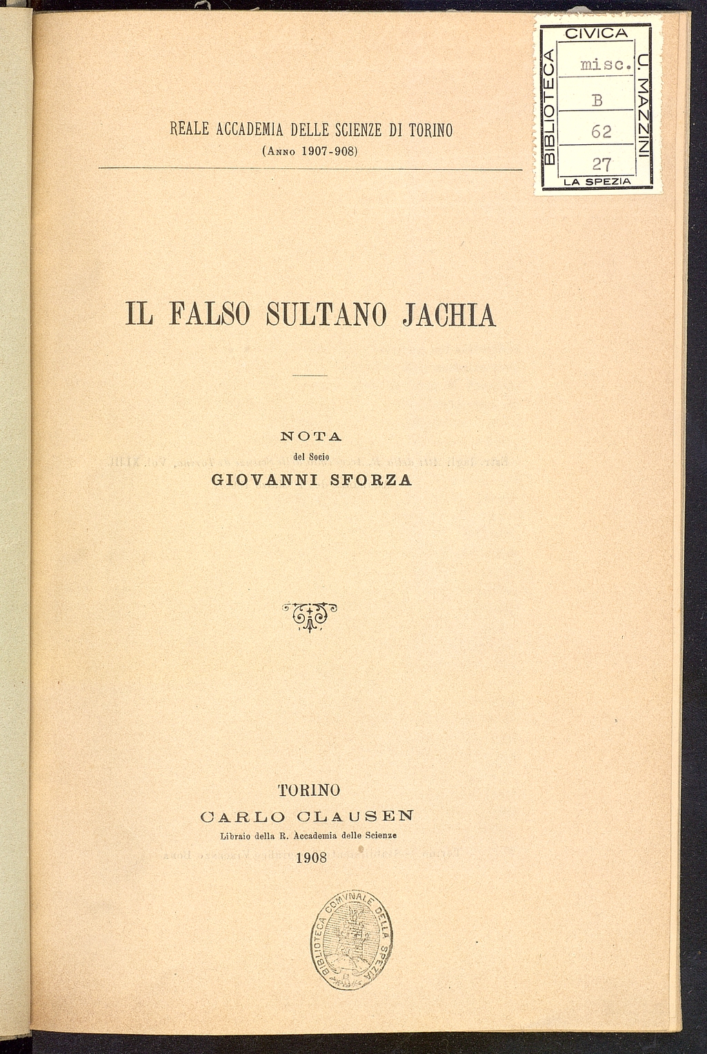 Tipo documento: TestoLivello bibliografico: Monografia Titolo: Il falso Sultano JachiaAutore: Sforza GiovanniData di pubblicazione: 1908Identificativo: MAZZM11101103ARK: ark:/64639/MAZZM11101103ARK: ark:/64639/MAZZM11101103/3482