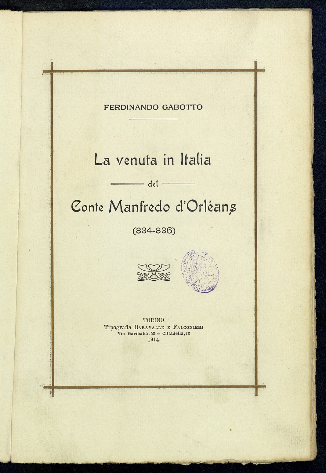Titolo: La venuta in Italia del Conte Manfredo d'Orleans (34-836)