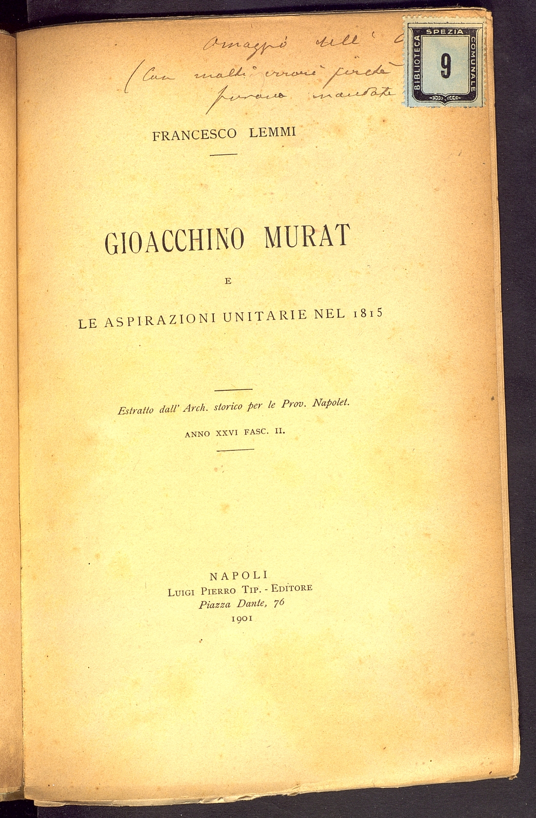 Titolo: Gioacchino Murat e le aspirazioni unitarie nel 1815