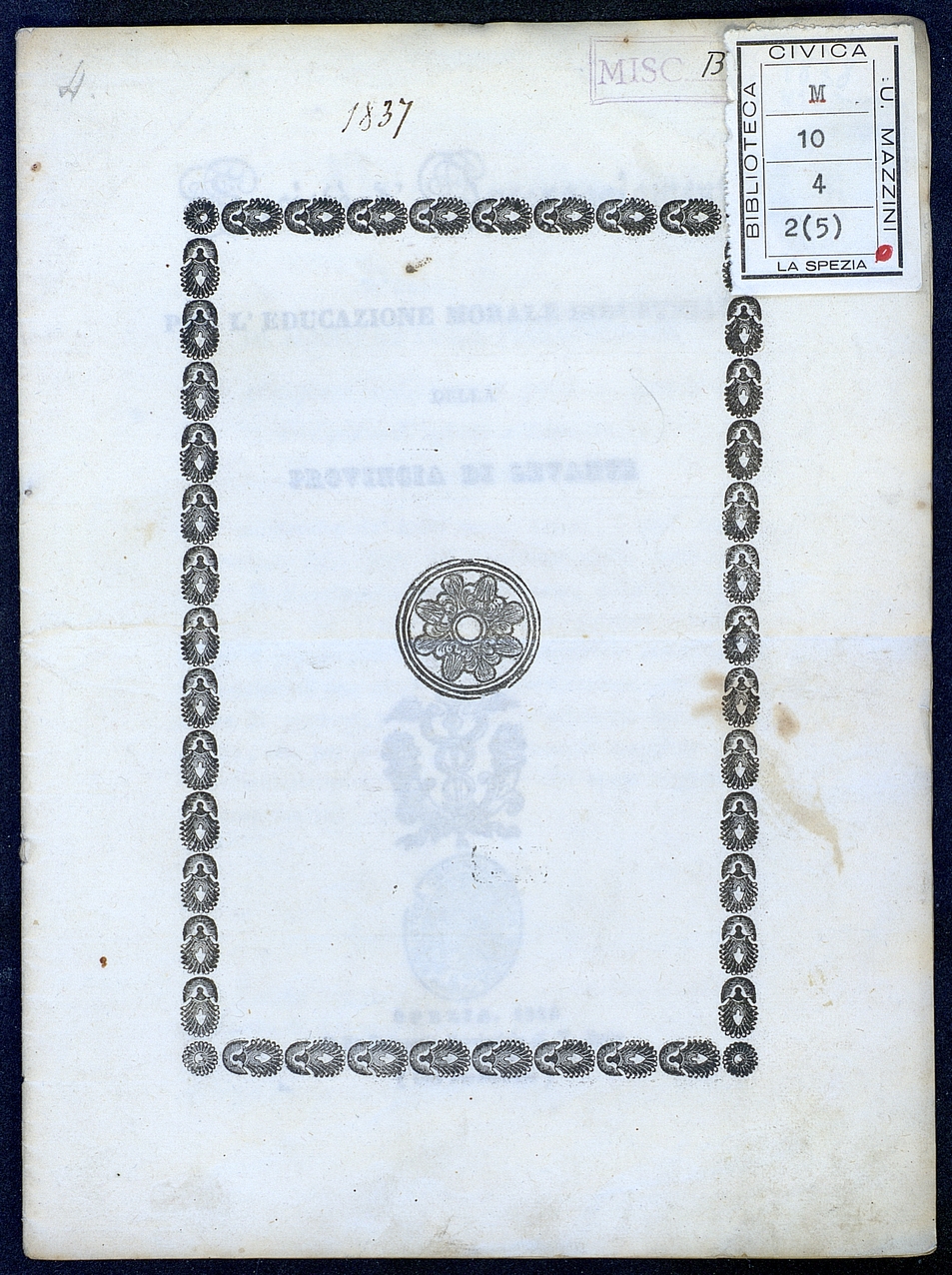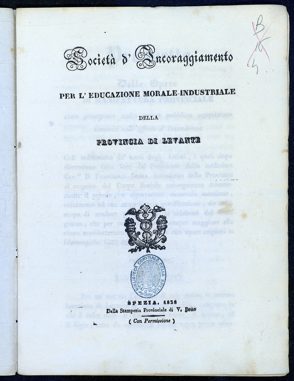 Titolo: Societa' d'incoraggiamento per l'educazione morale industriale della Provincia di Levante