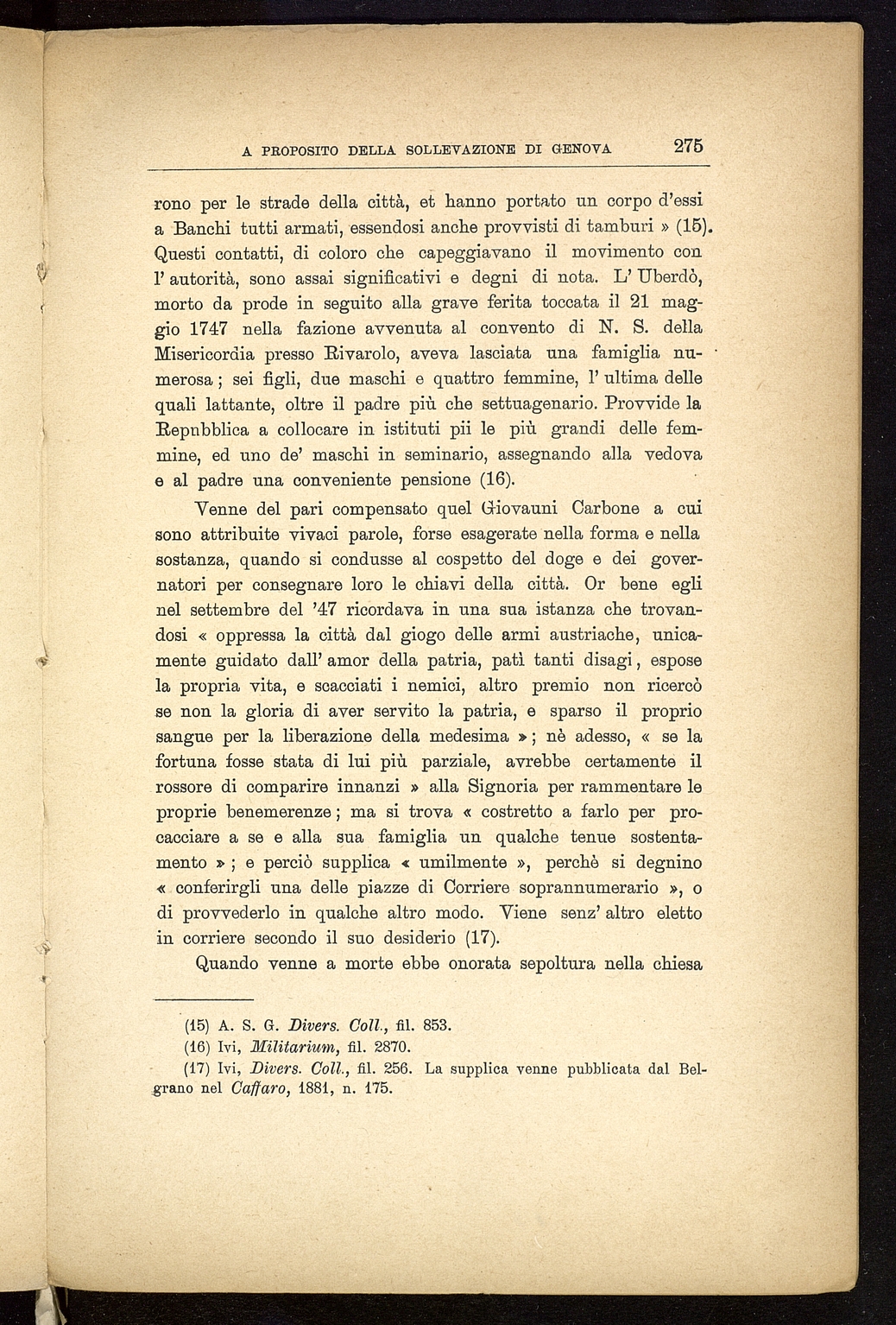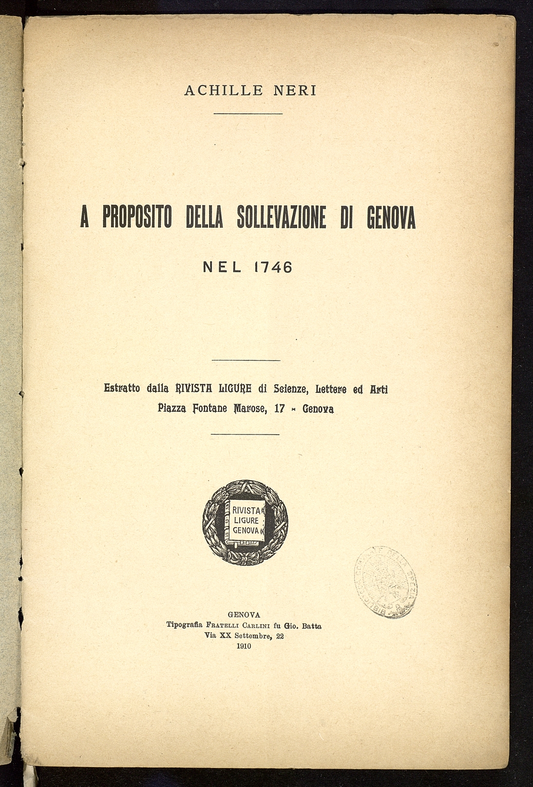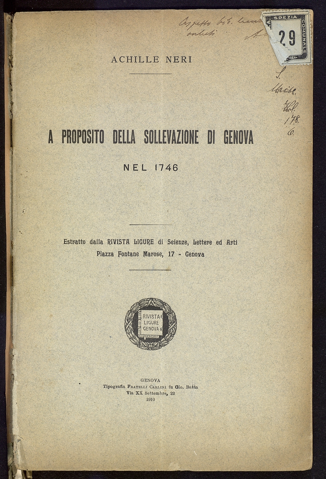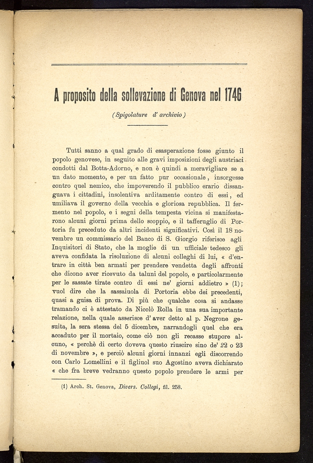 Titolo: A proposito della sollevazione di Genova nel 1746