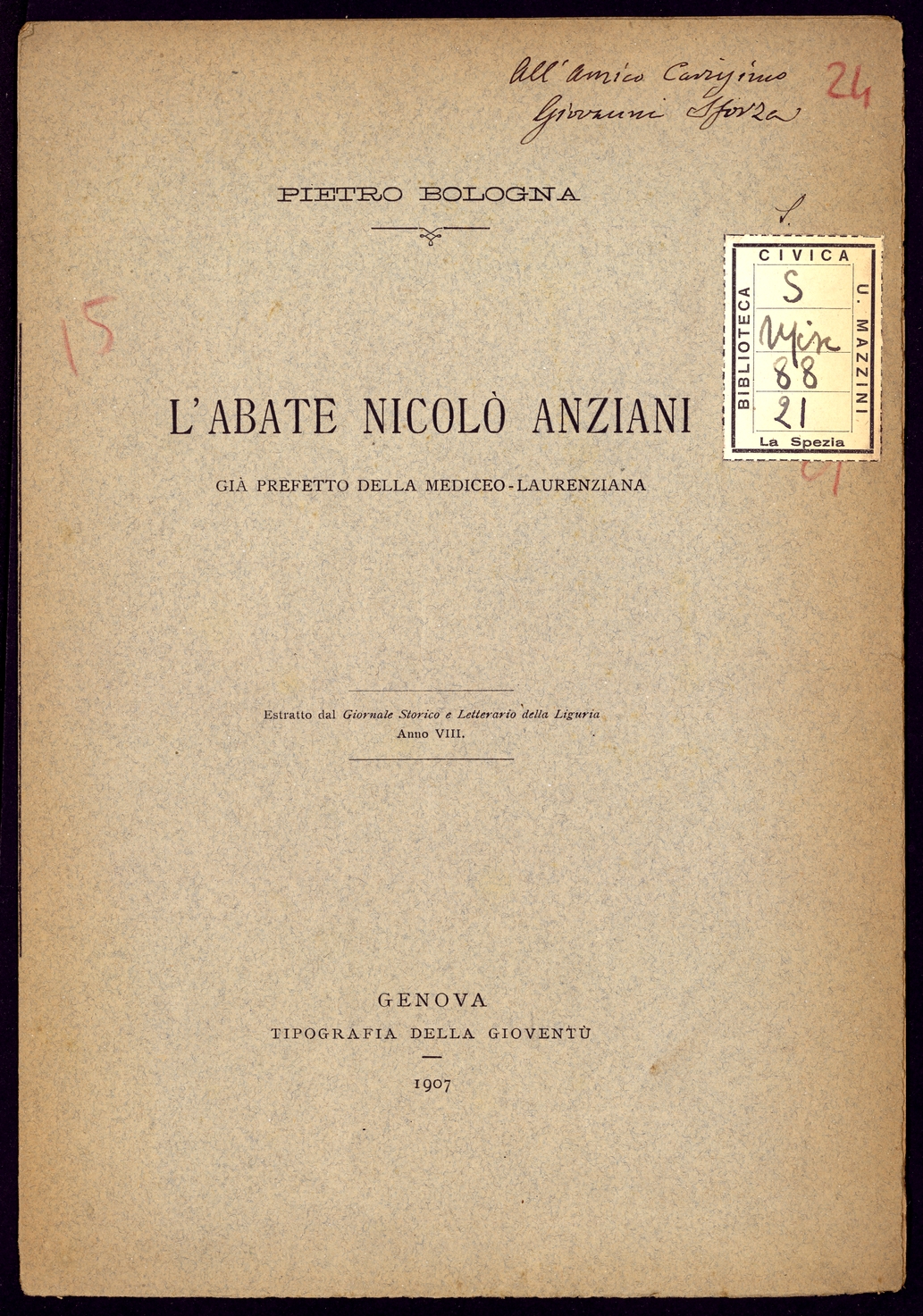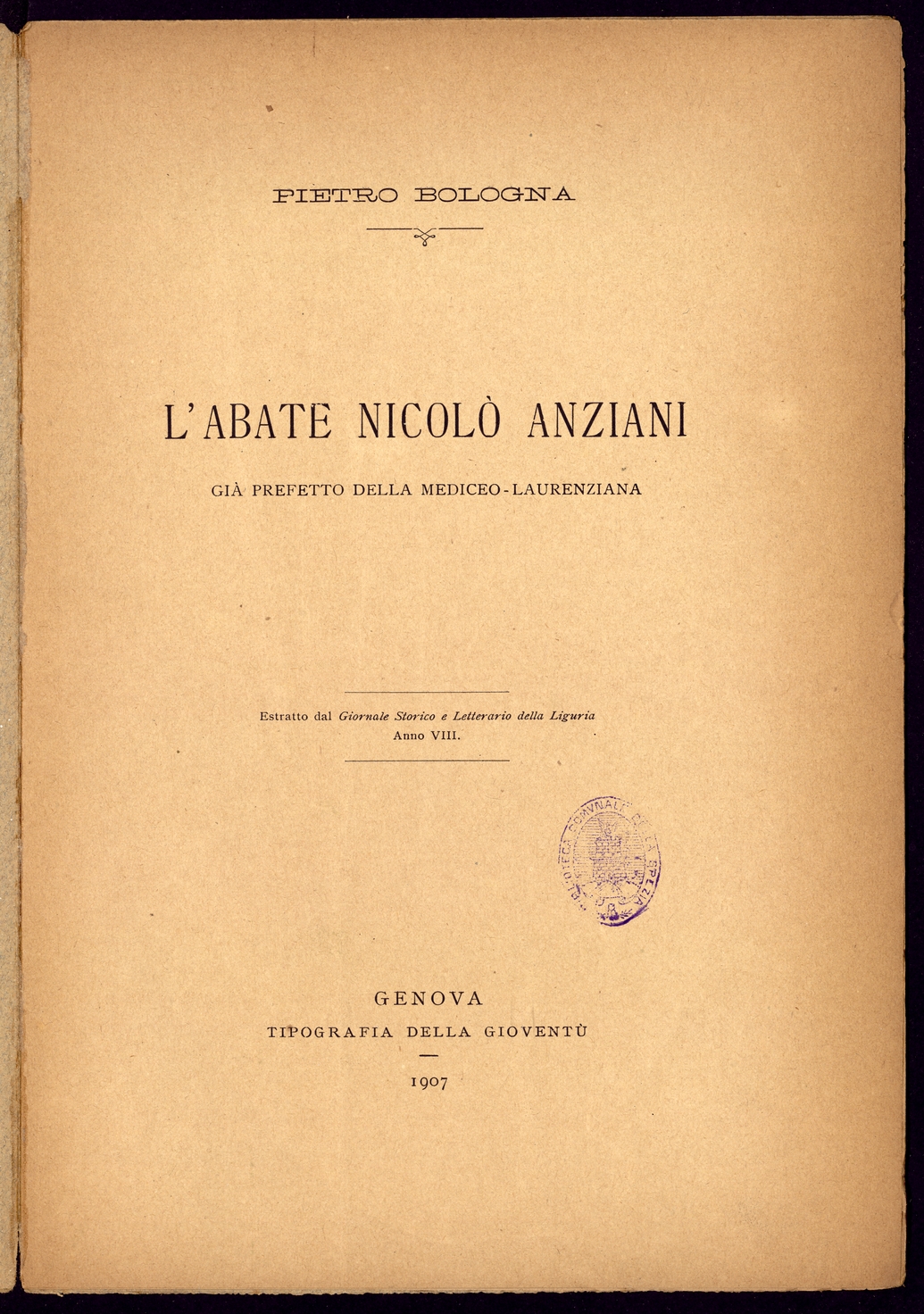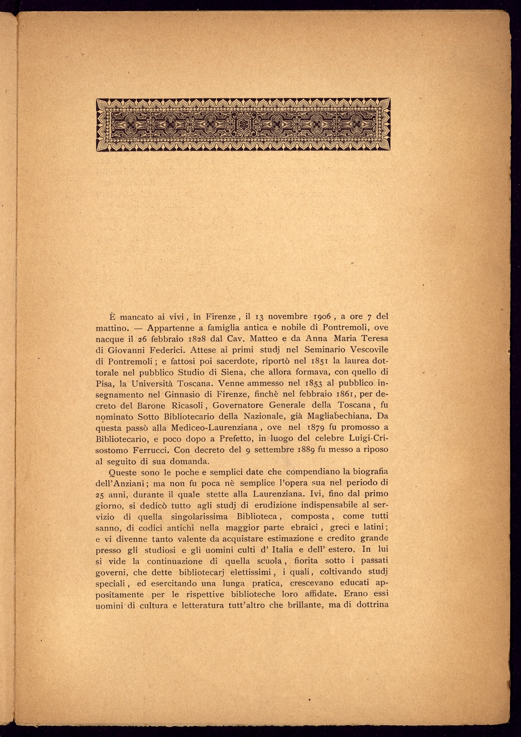 Titolo: L'Abate Nicolo' Anziani gia' prefetto della Mediceo-Laurenziana