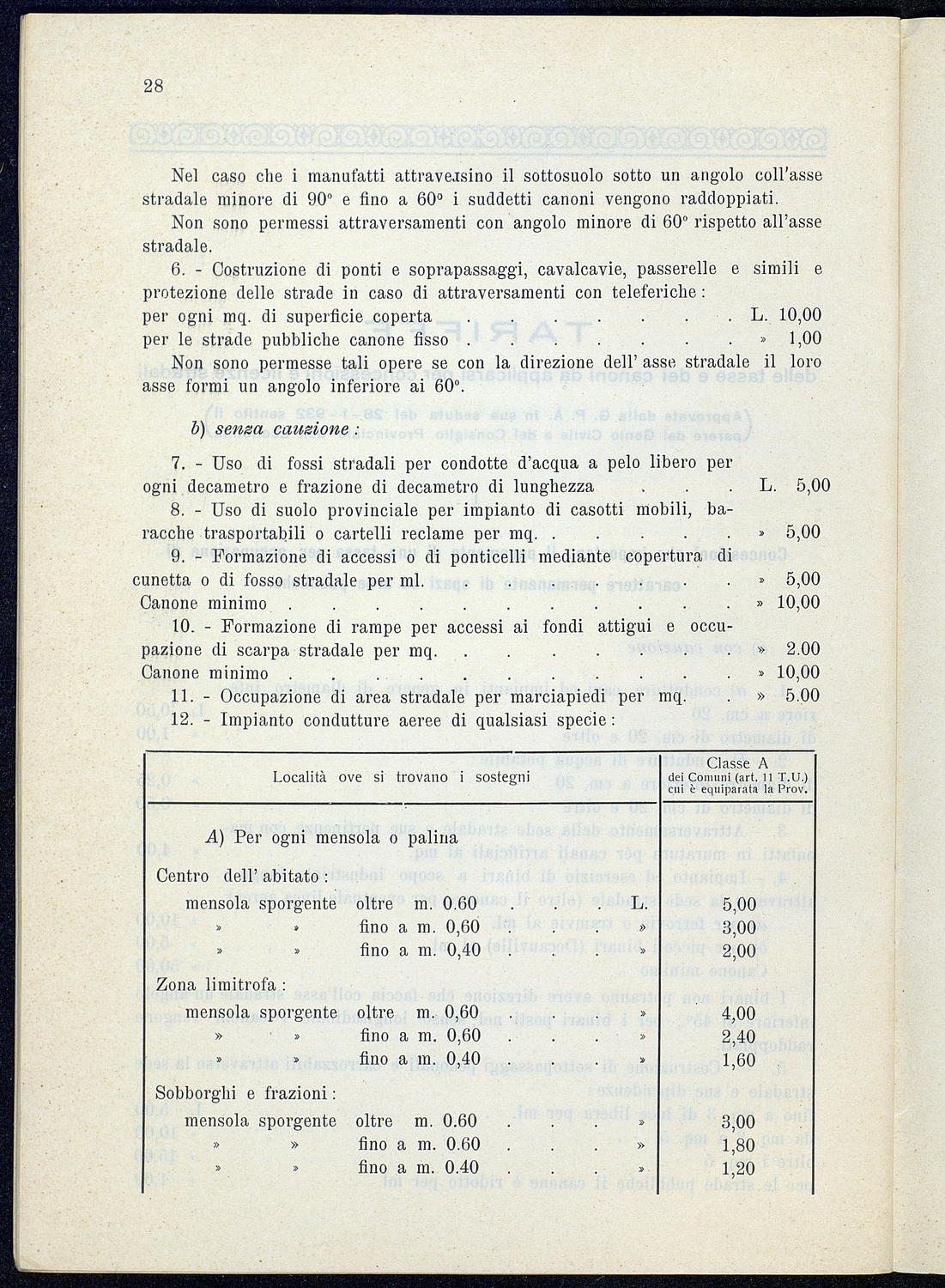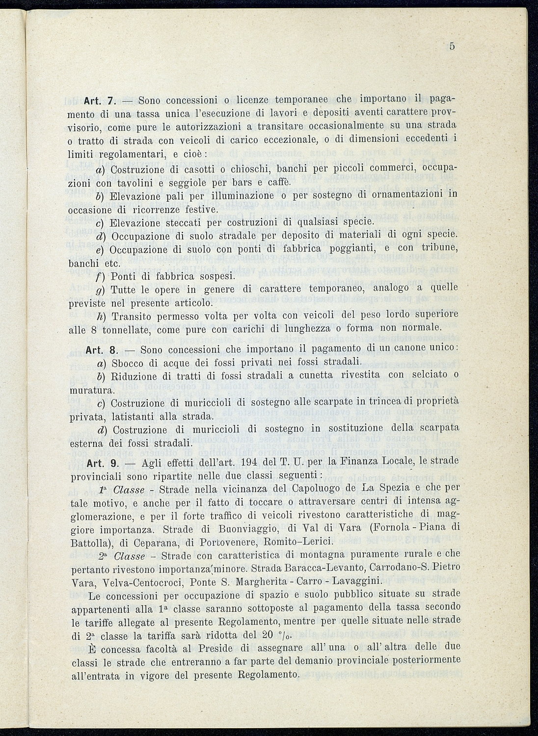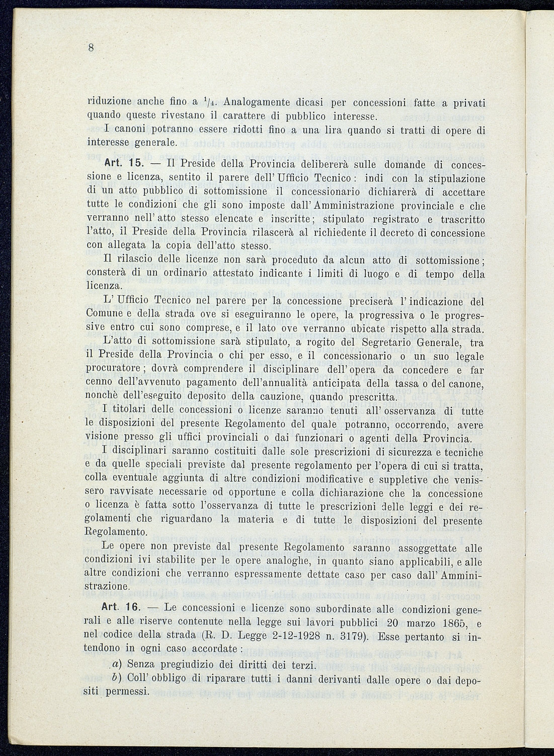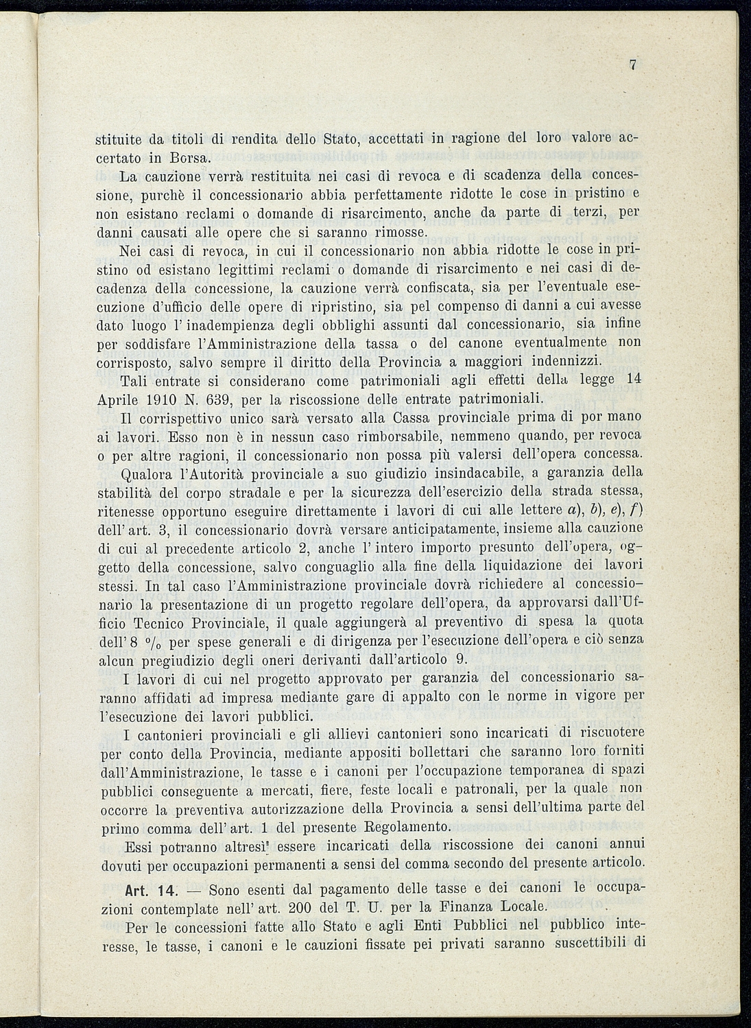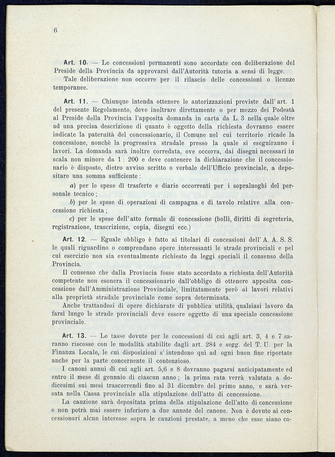 Titolo: Regolamento per le concessioni e licenze e per la riscossione della tassa per l'occupazione di spazi ed aree pubbliche relativa alle strade mantenute dalla Provincia e loro dipendenze Preside sul conto consuntivo 1934