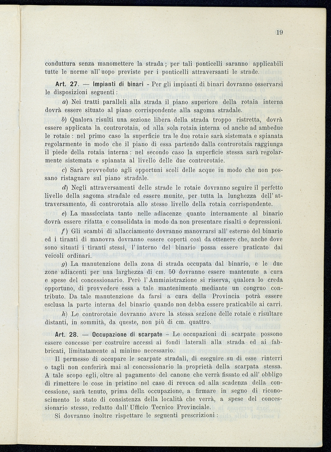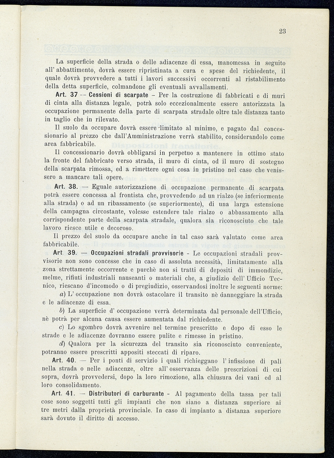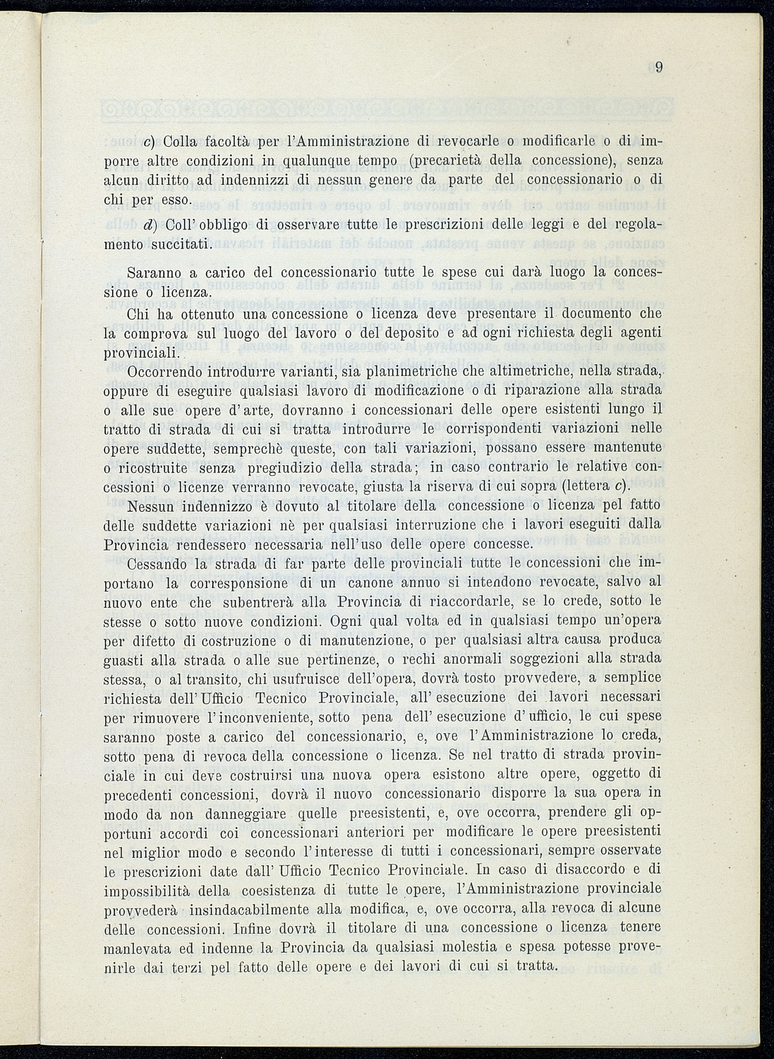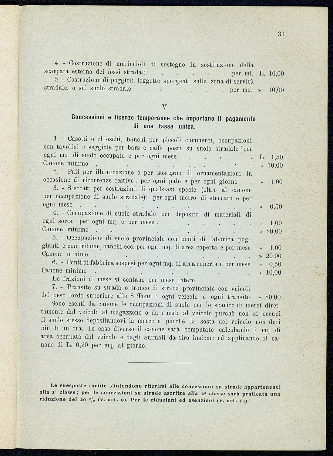Titolo: Regolamento per le concessioni e licenze e per la riscossione della tassa per l'occupazione di spazi ed aree pubbliche relativa alle strade mantenute dalla Provincia e loro dipendenze Preside sul conto consuntivo 1934