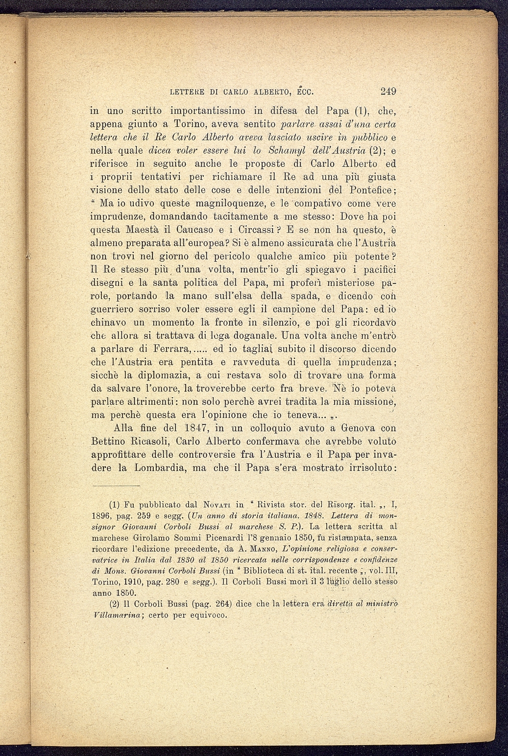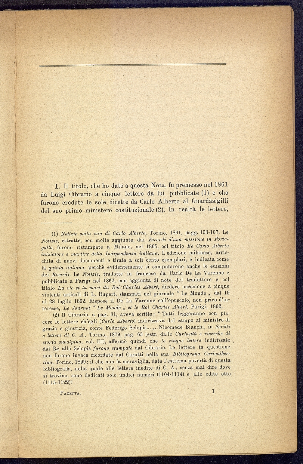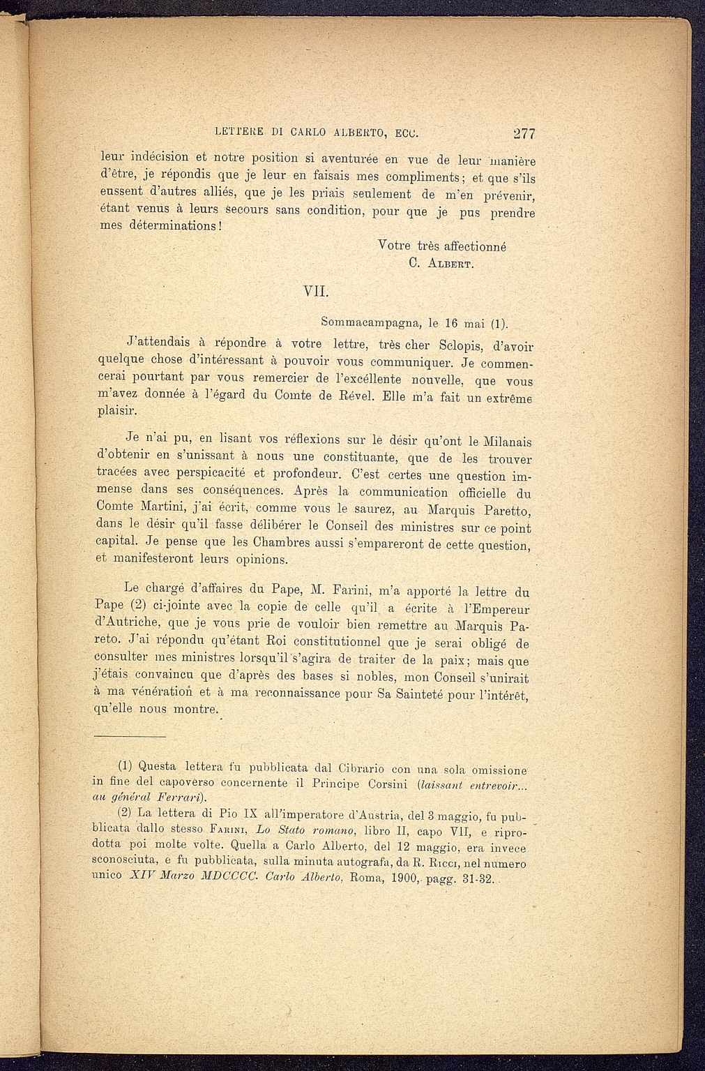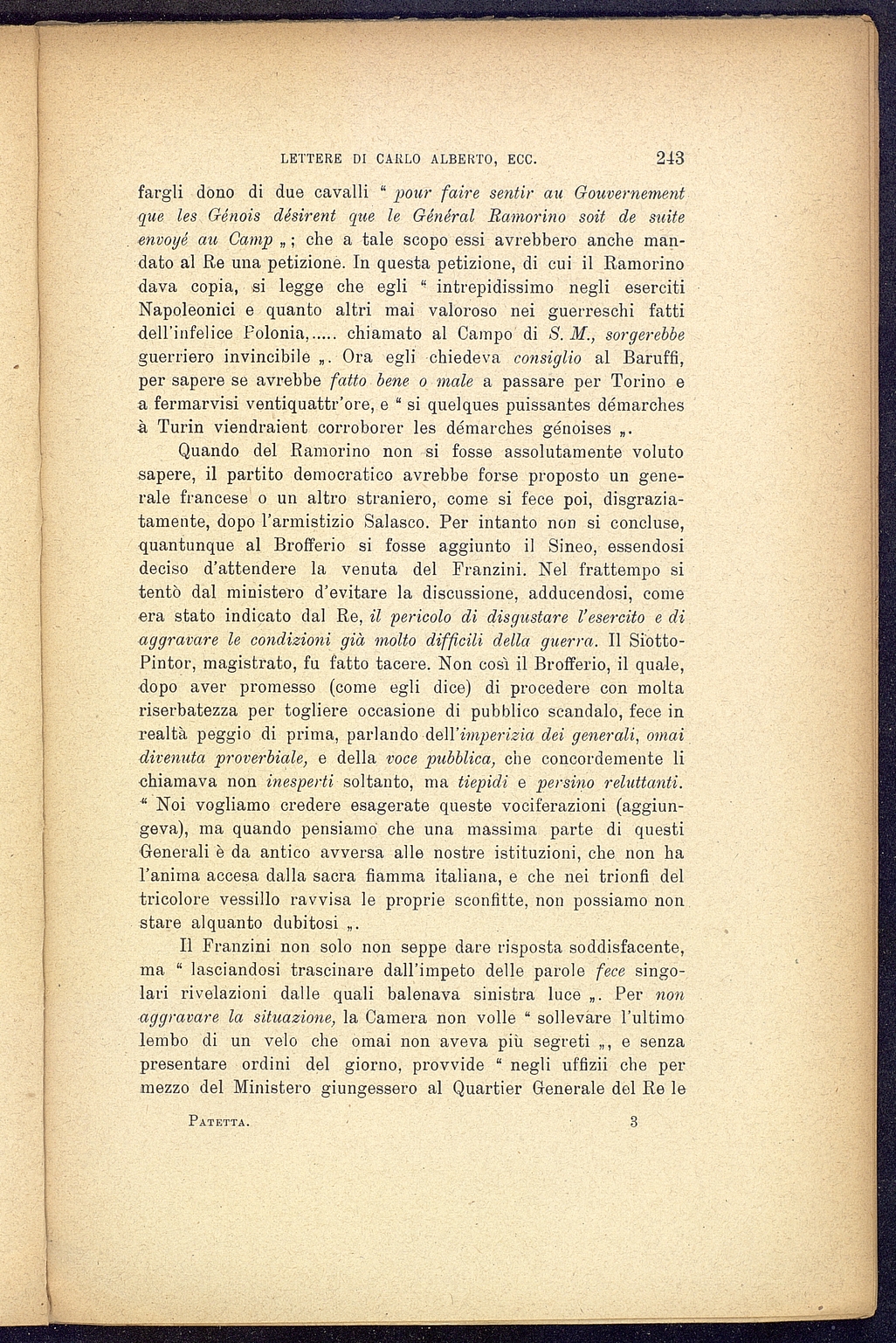 Titolo: Lettere di Carlo Alberto scritte durante la campagna del 1948 al Conte Federico Sclopis