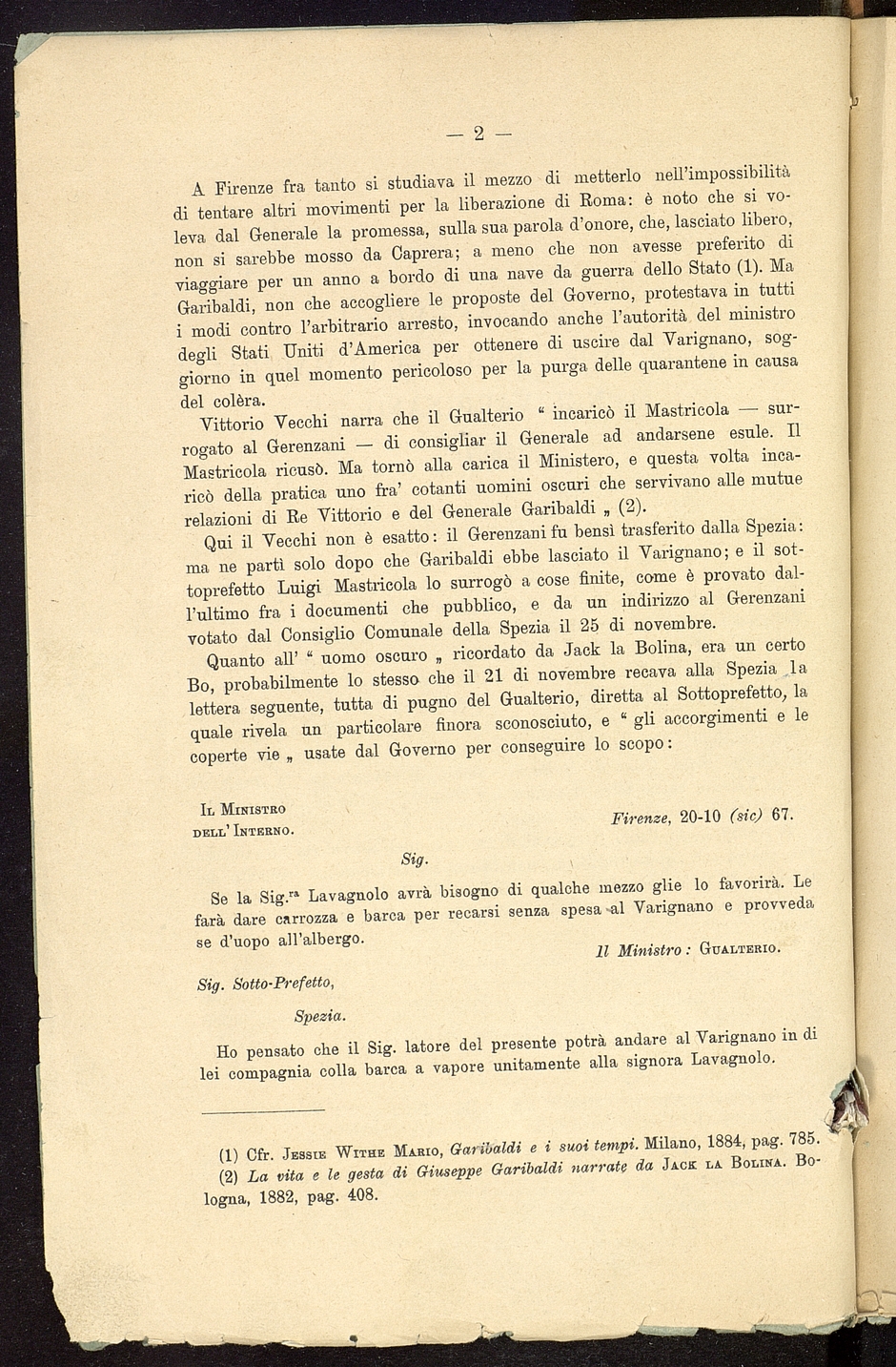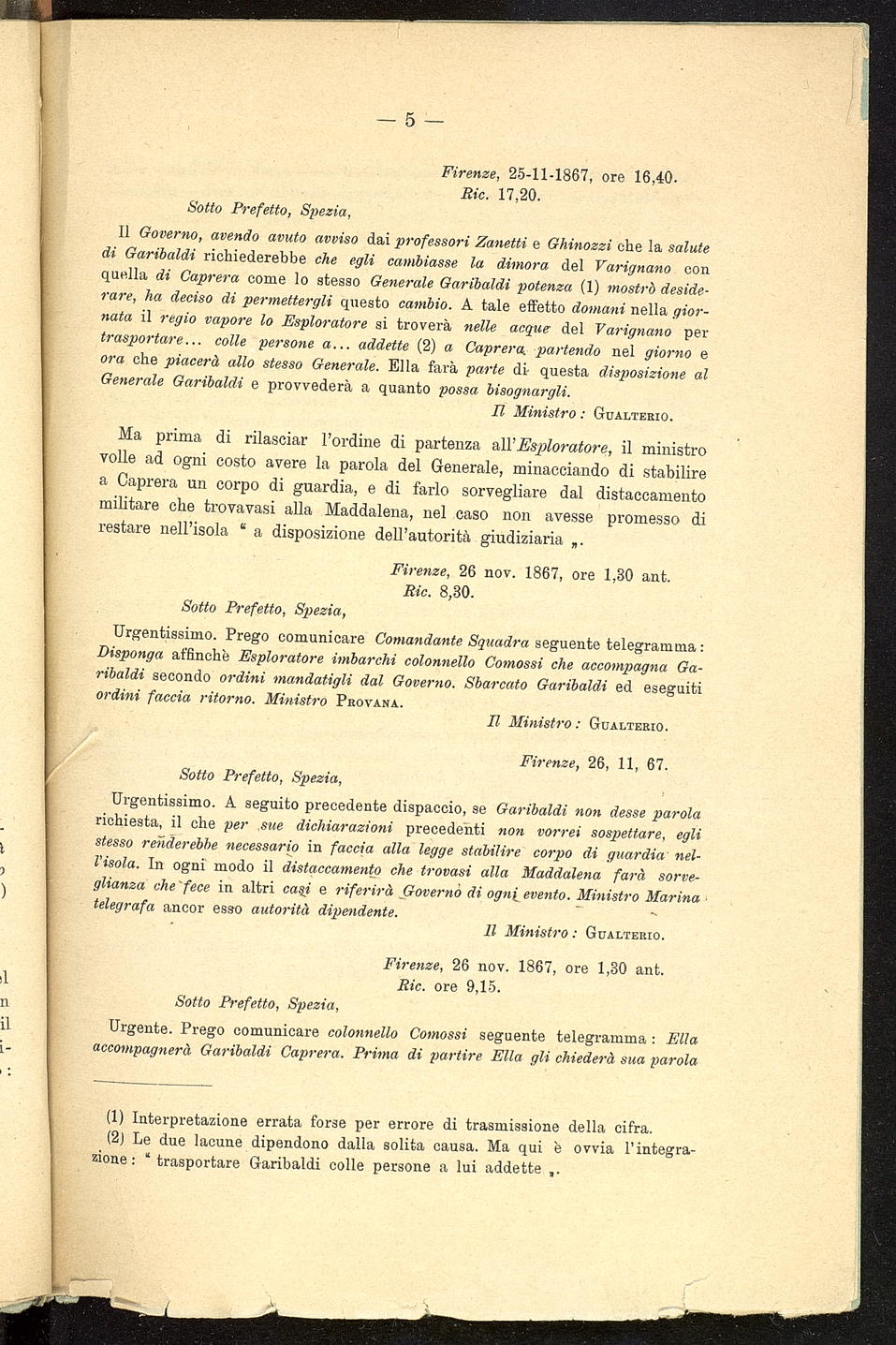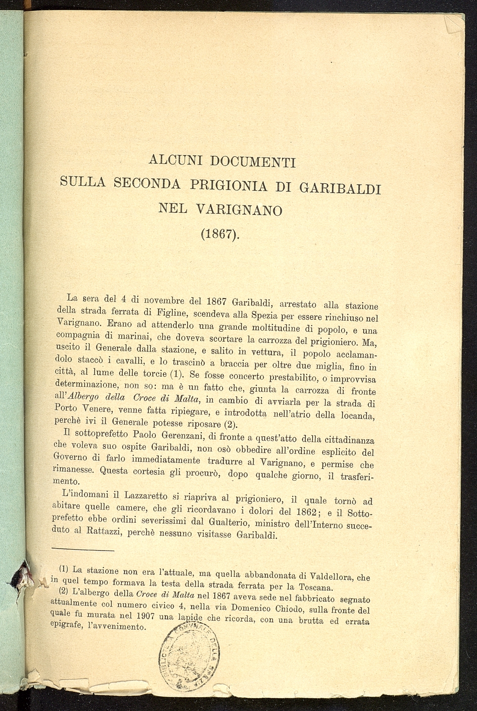 Titolo: Alcuni documenti sulla seconda prigionia di Garibaldi nel Varignano