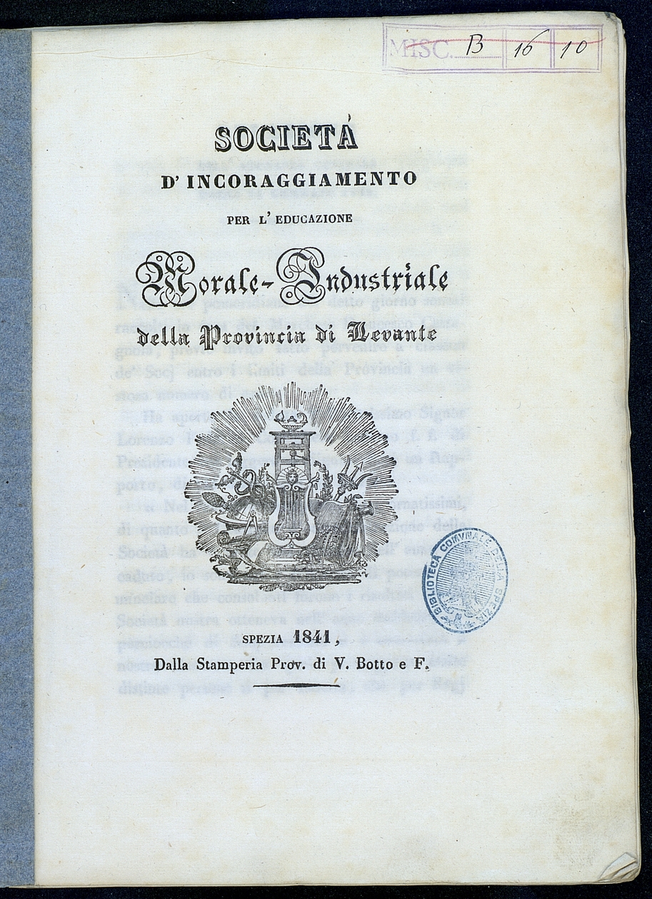 Titolo: Societa' d'incoraggiamento per l'educazione morale industriale della Provincia di Levante