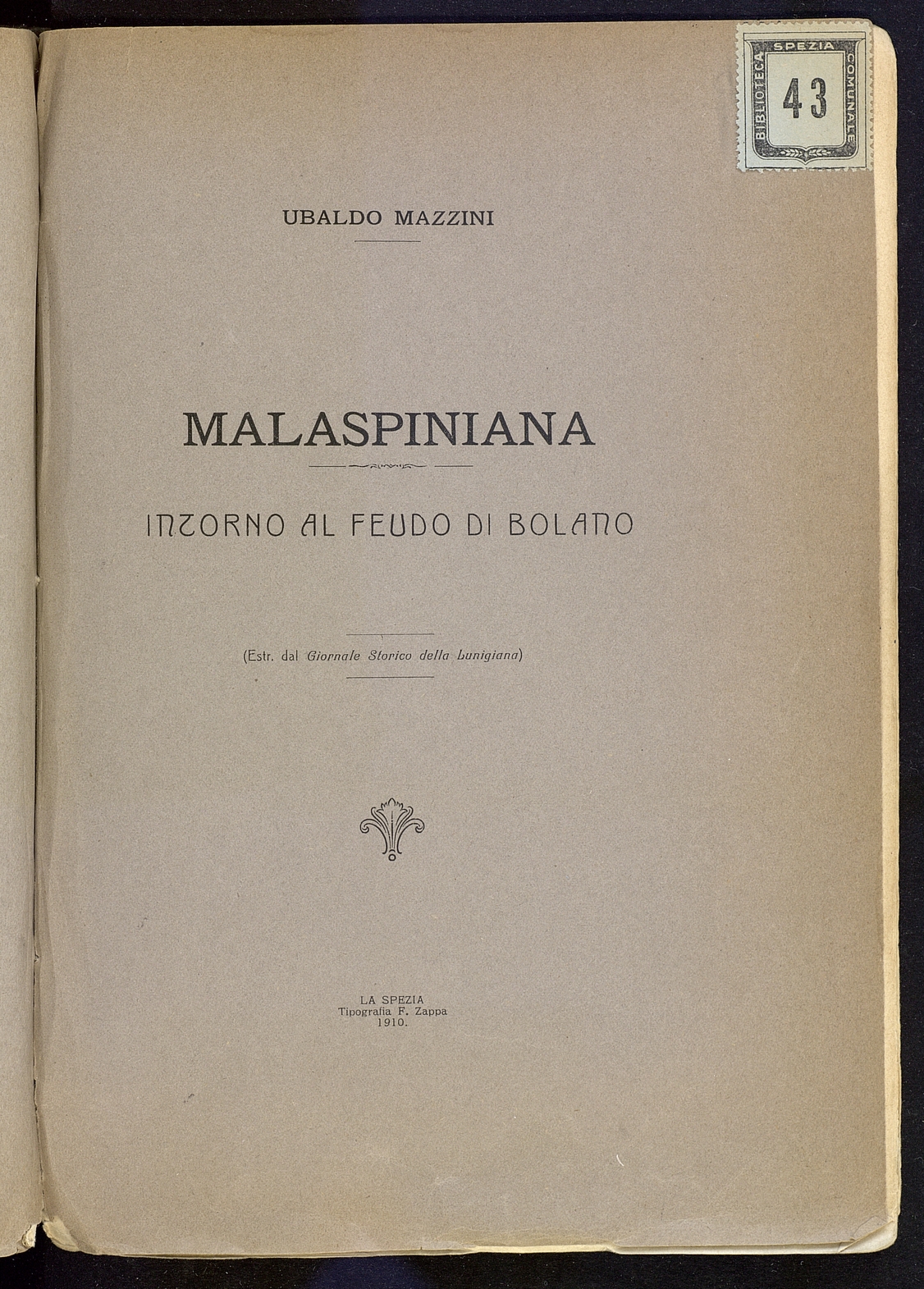 Titolo: Malaspiniana: intorno al feudo di Bolano