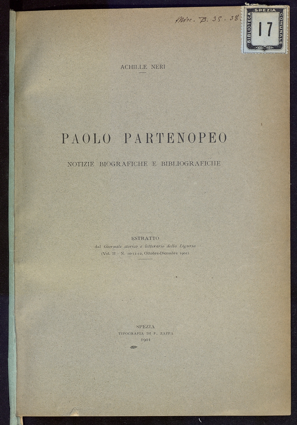 Titolo: Paolo Partenopeo: notizie biografiche e bibliografiche
