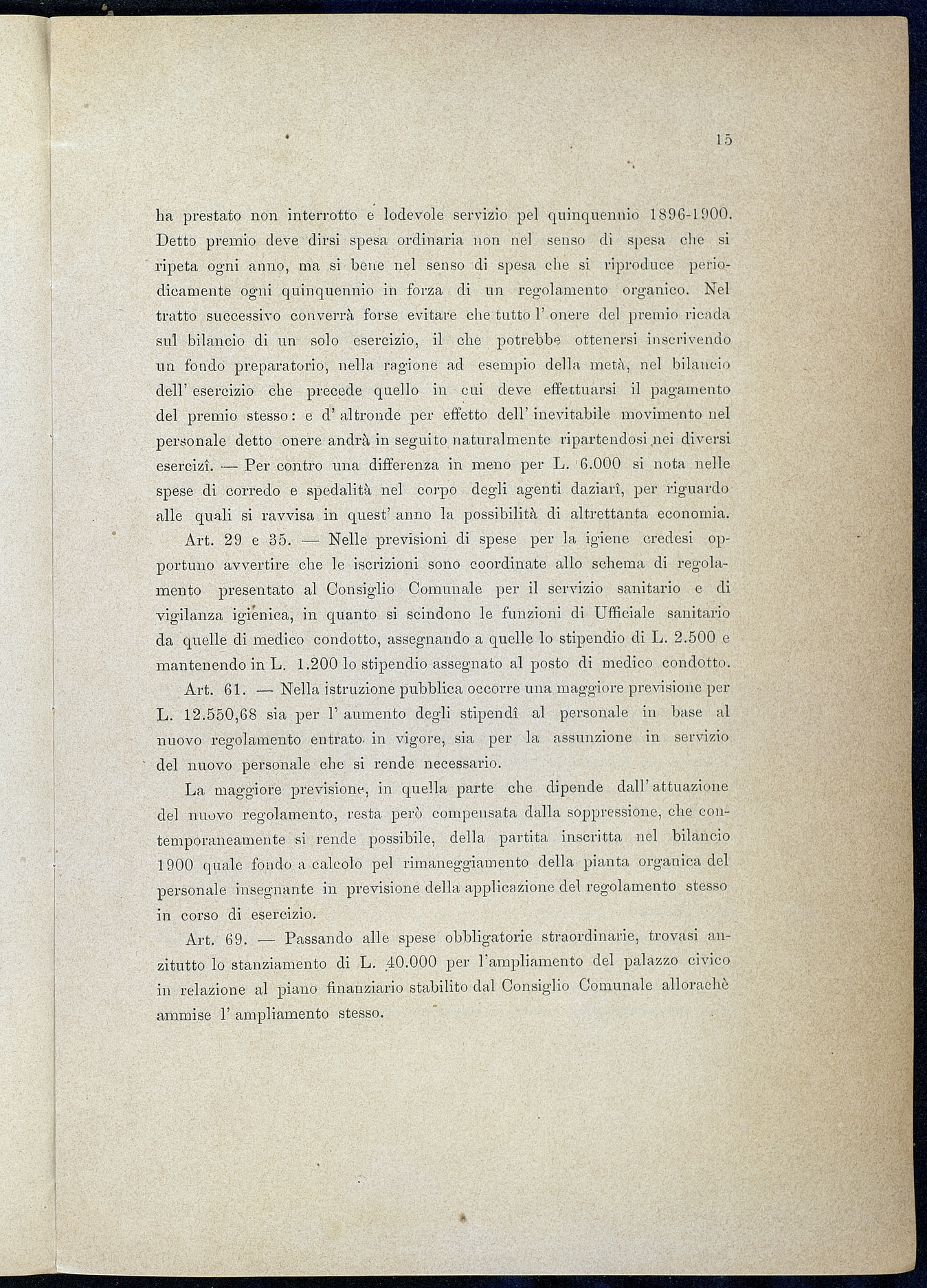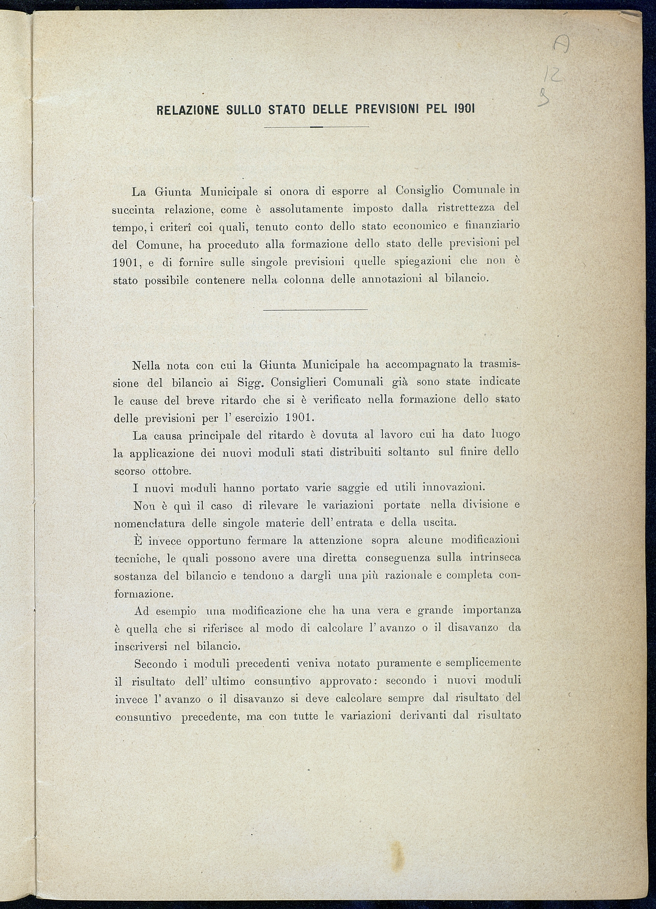 Titolo: Relazione sullo stato delle previsioni pel 1901: citta' della Spezia