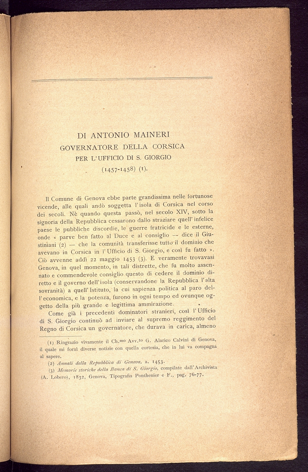 Titolo: Di Antonio Maineri governatore della Corsica ecc.
