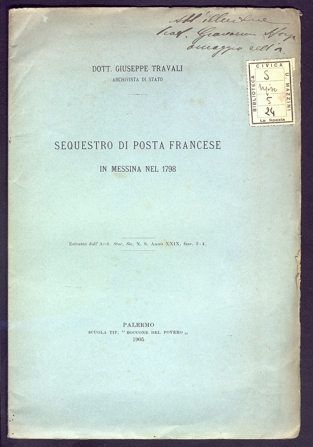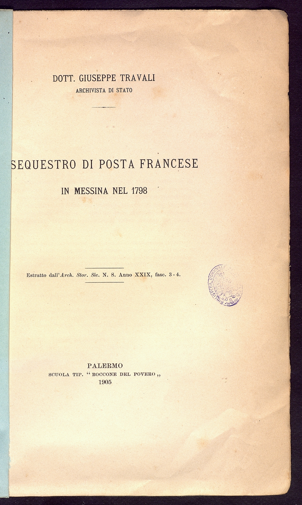 Titolo: Sequestro di posta francese in Messina nel 1798