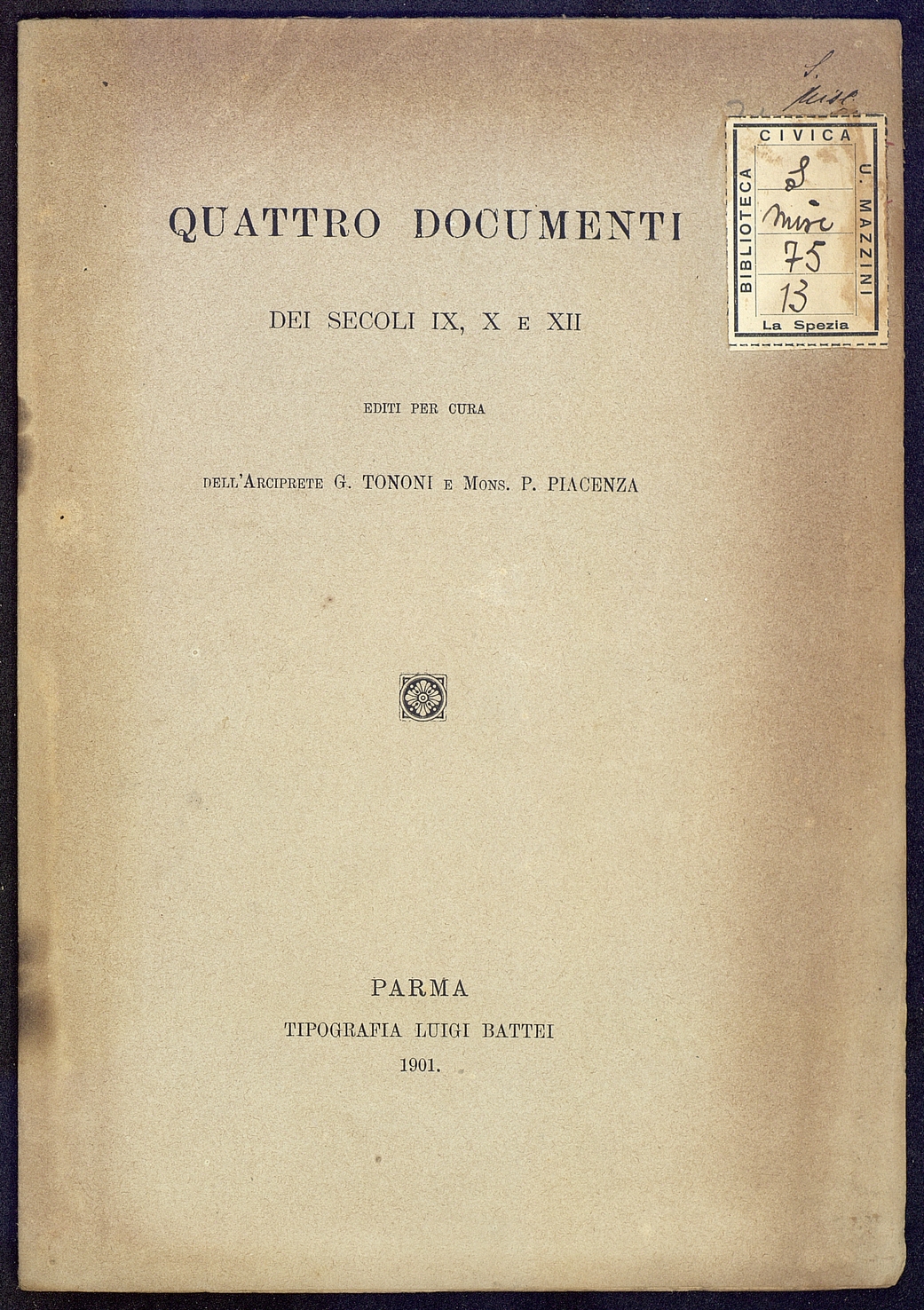 Tipo documento: TestoLivello bibliografico: Monografia Titolo: Quattro documenti dei sec. IX,X,XIIData di pubblicazione: 1901Identificativo: MXS075013ARK: ark:/64639/MXS075013ARK: ark:/64639/MXS075013/38088