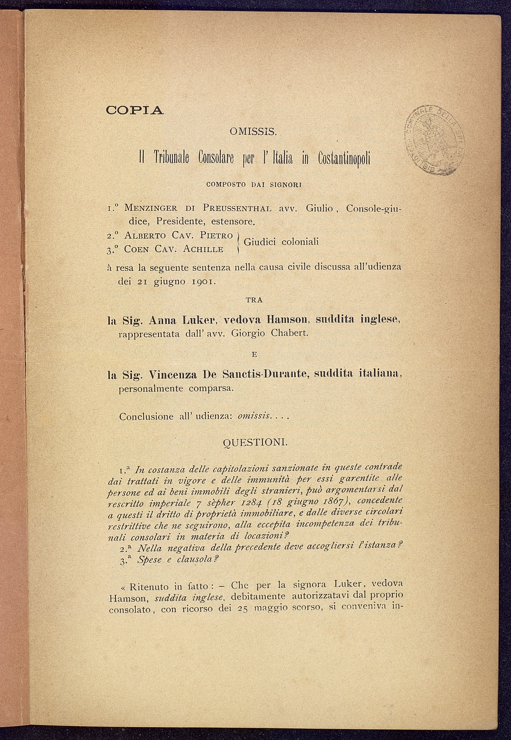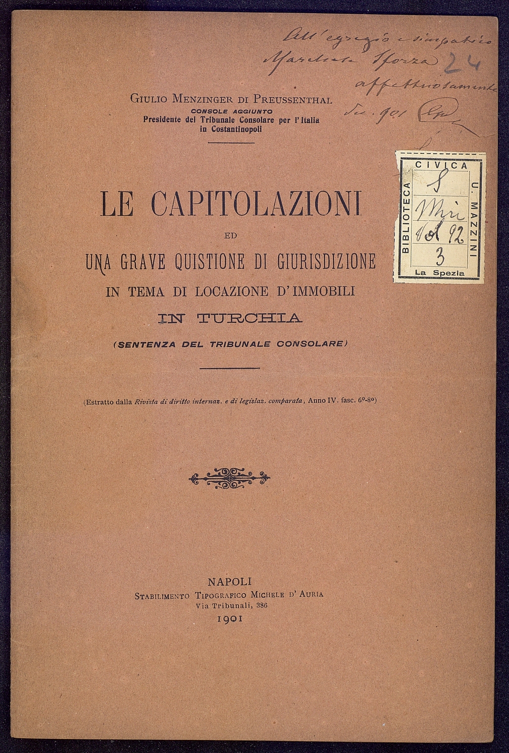 Titolo: Le capitolazioni ed una grave questione di giuristizione ecc.