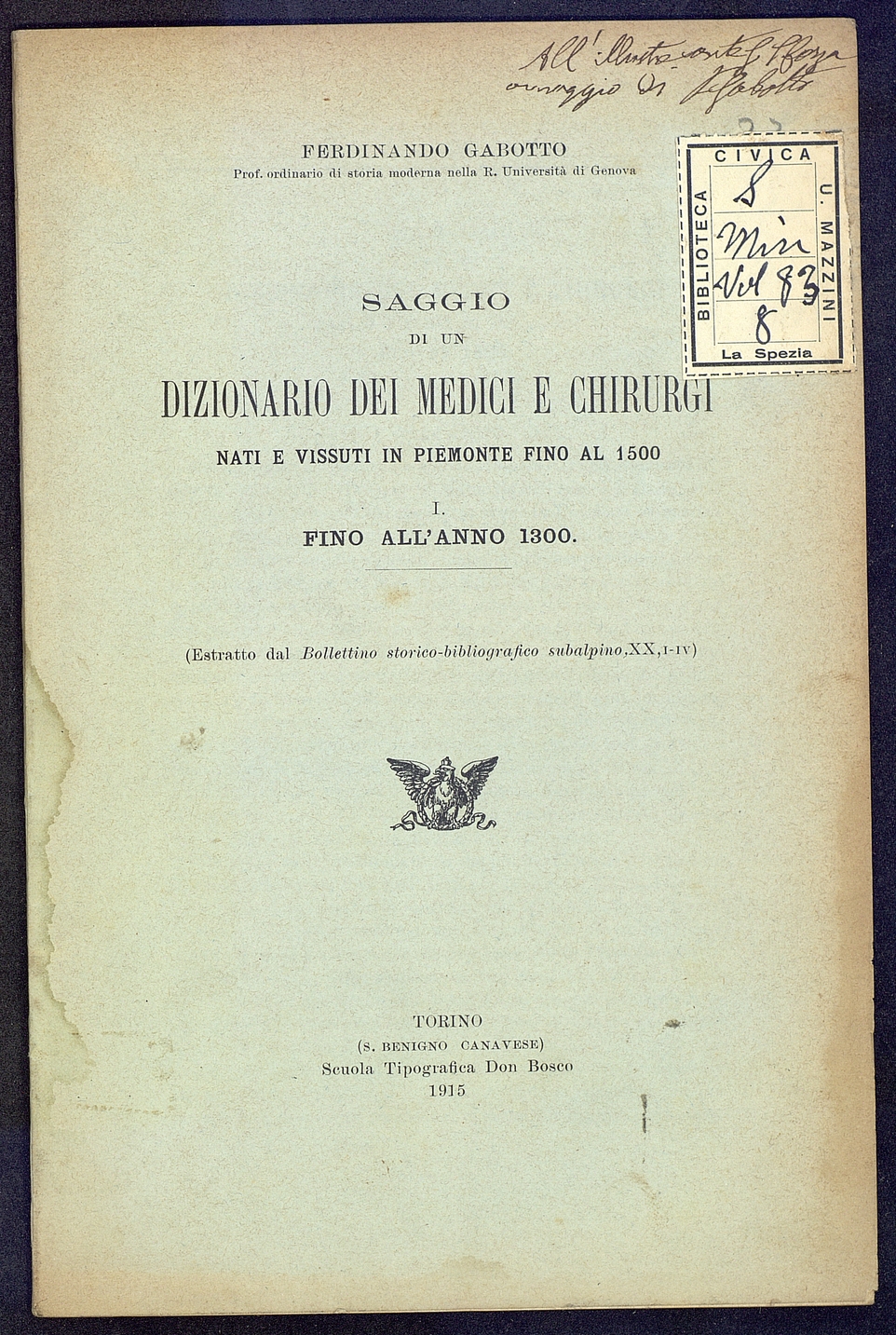 Titolo: Saggio di un dizionario dei medici e chirurgi nati e vissuti in Piemonte