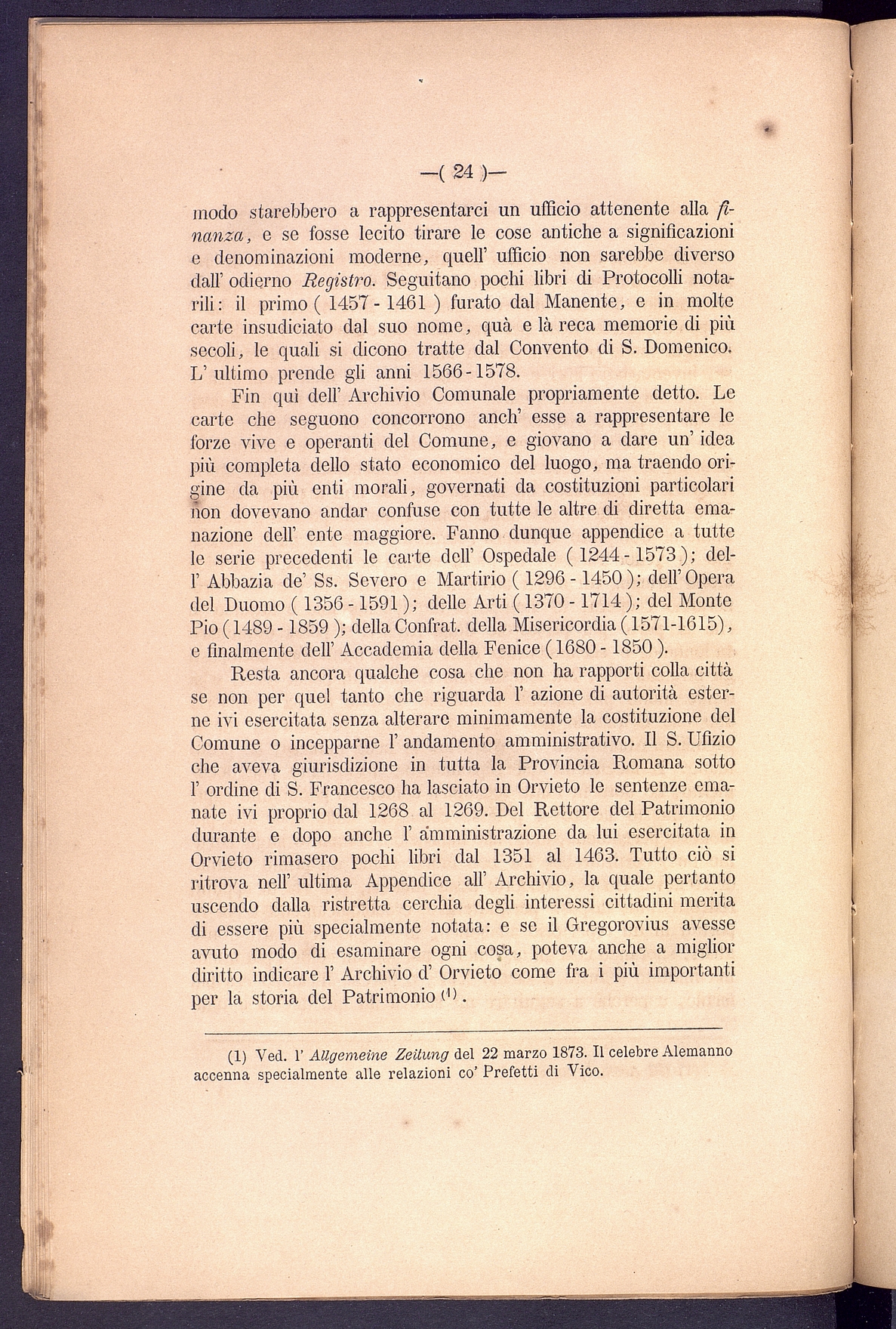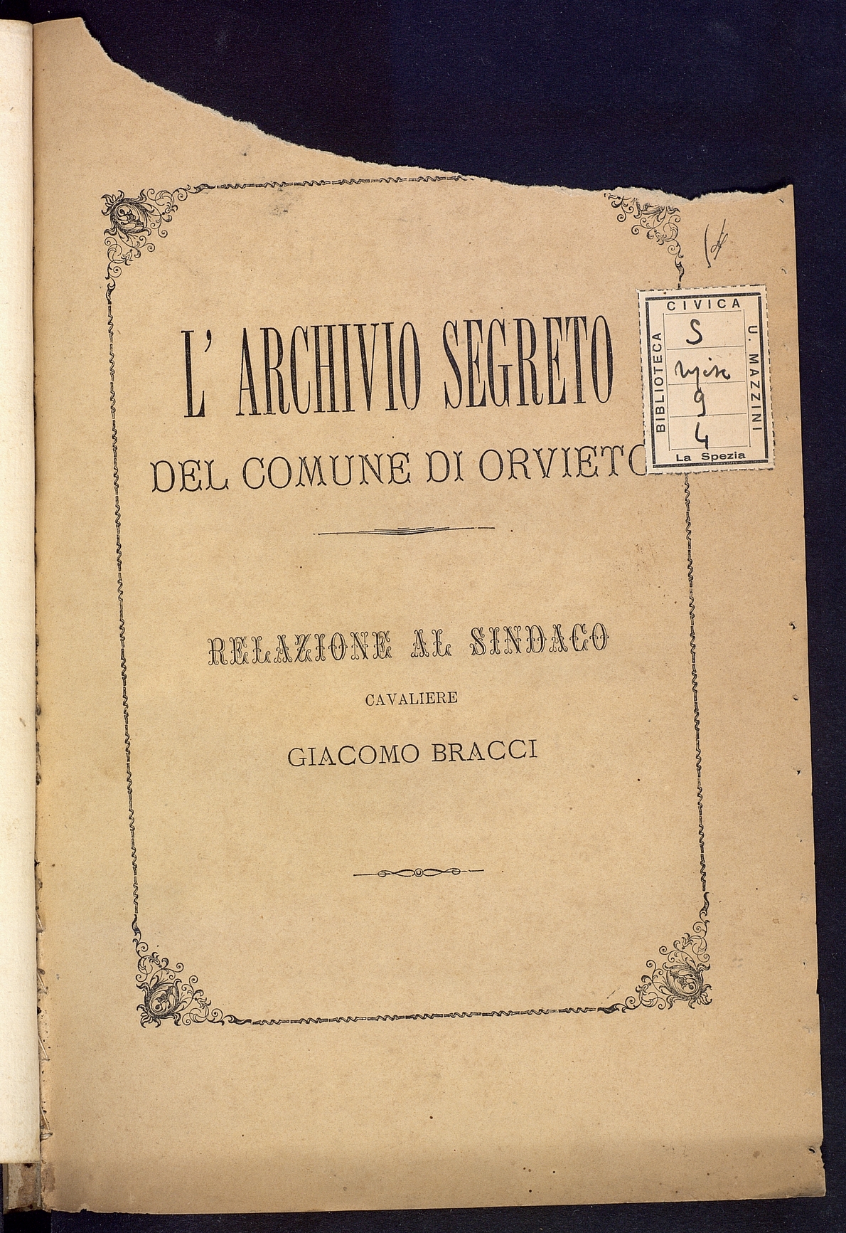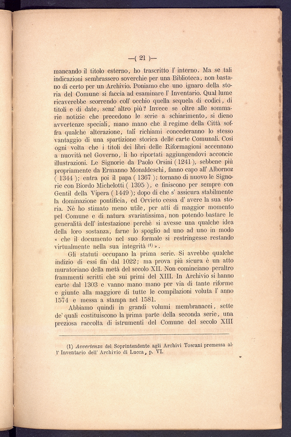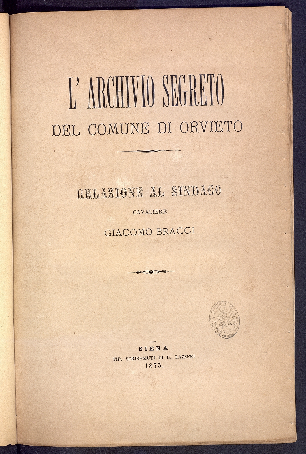 Titolo: L'Archivio segreto del Comune di Orvieto Relazione
