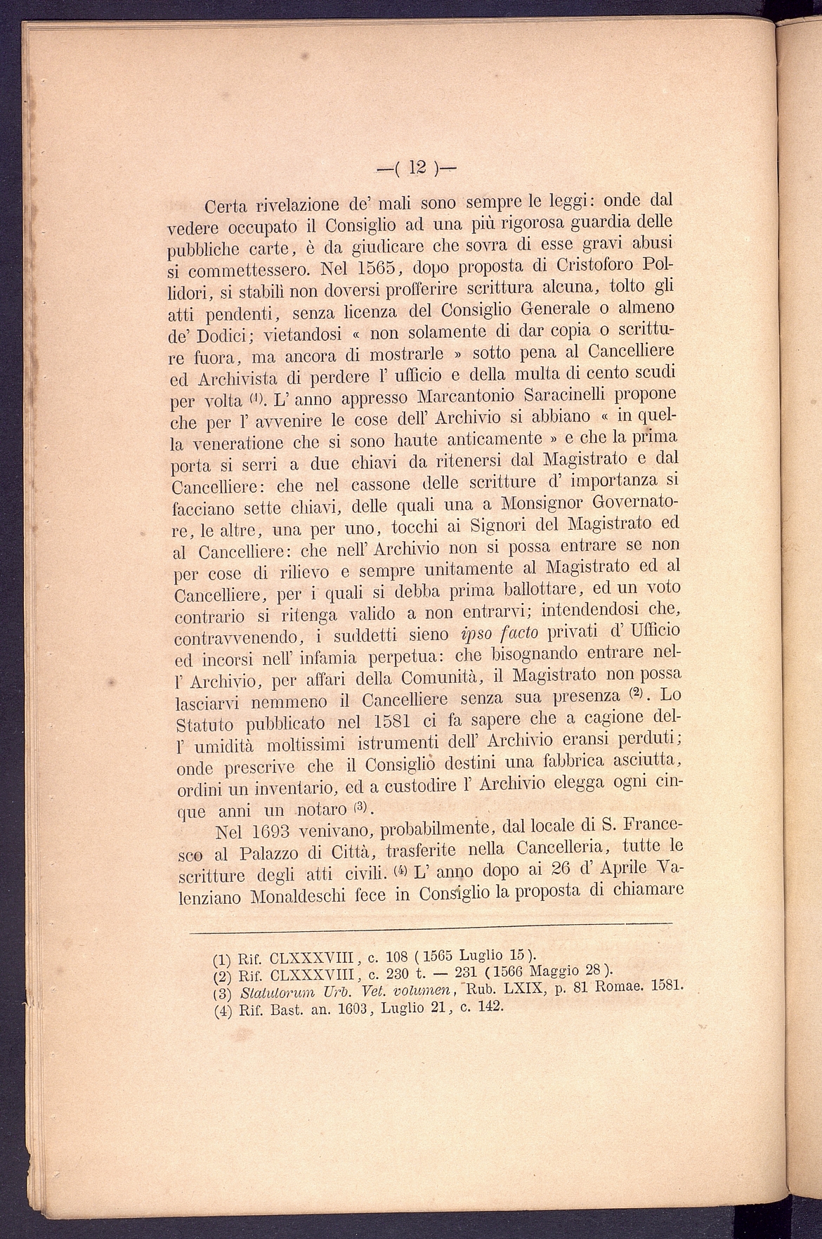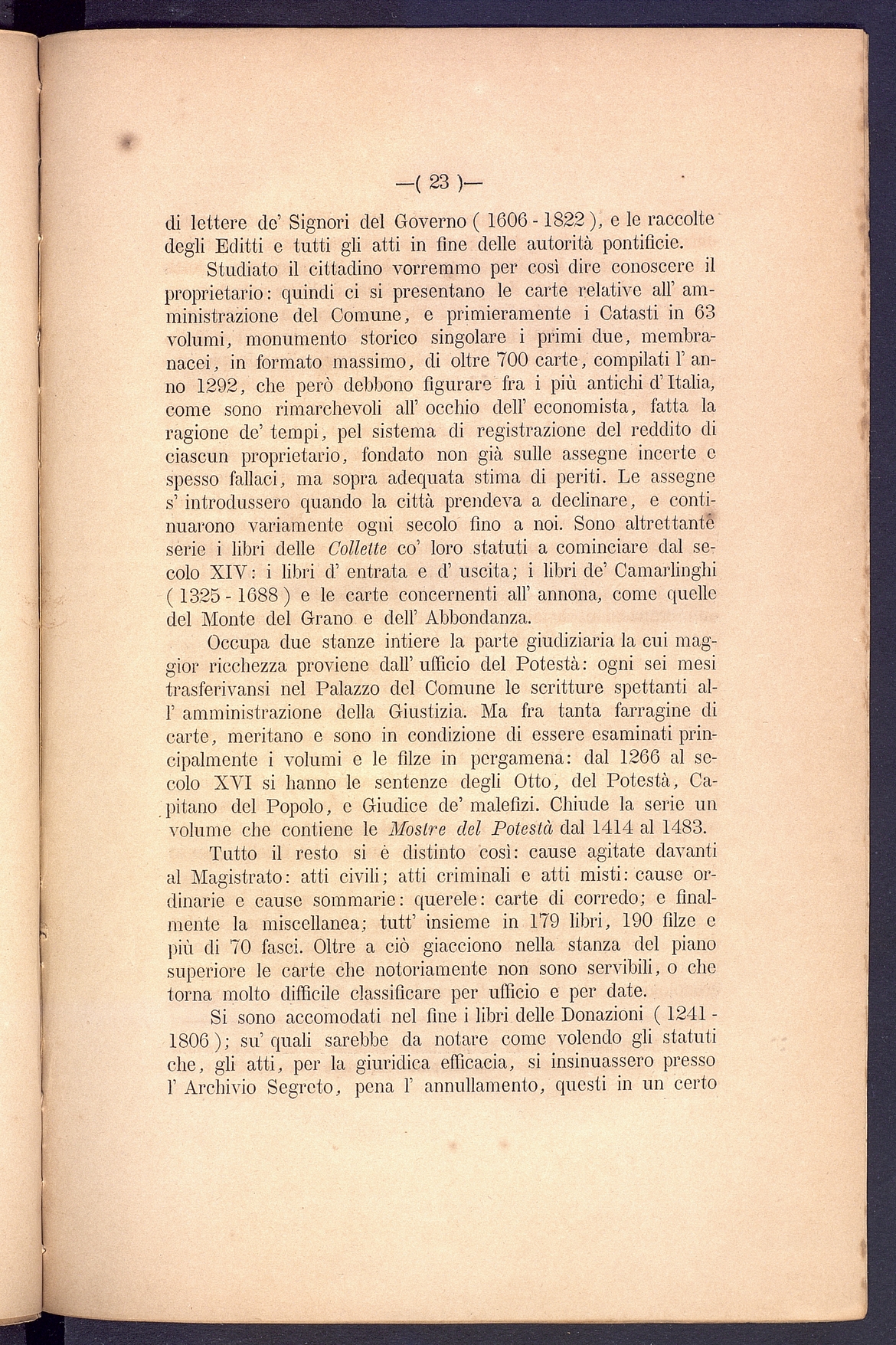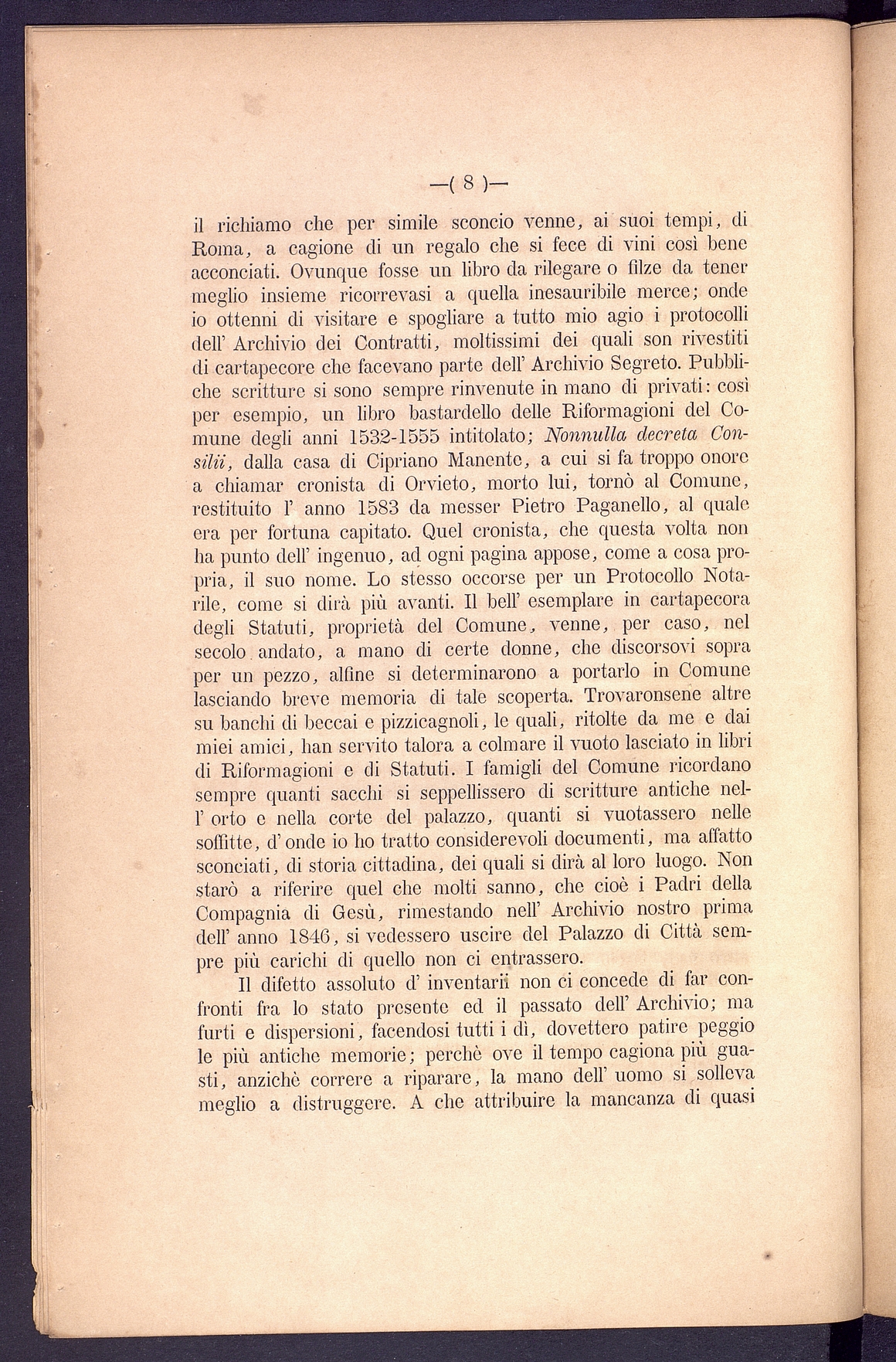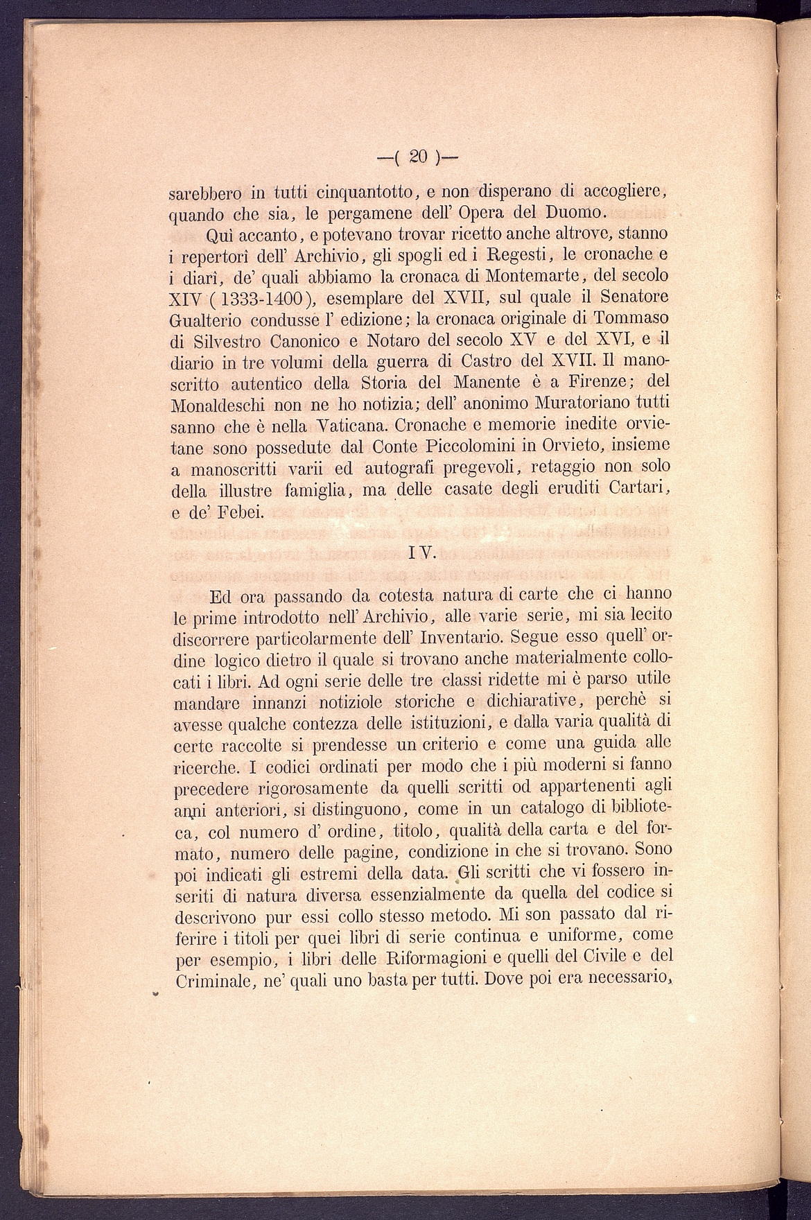 Titolo: L'Archivio segreto del Comune di Orvieto Relazione
