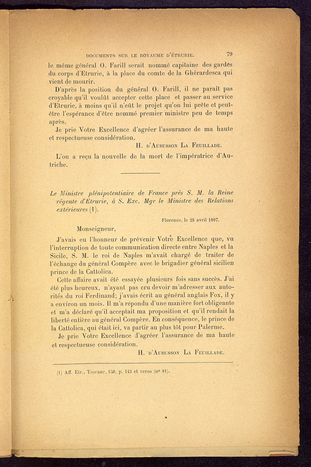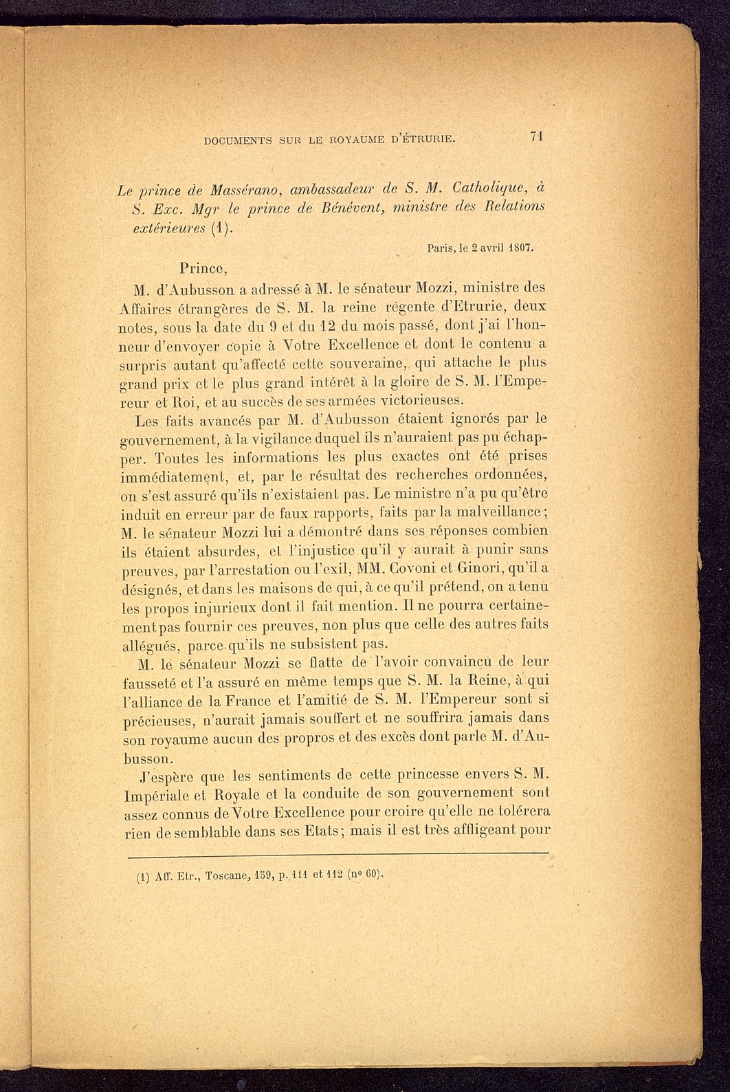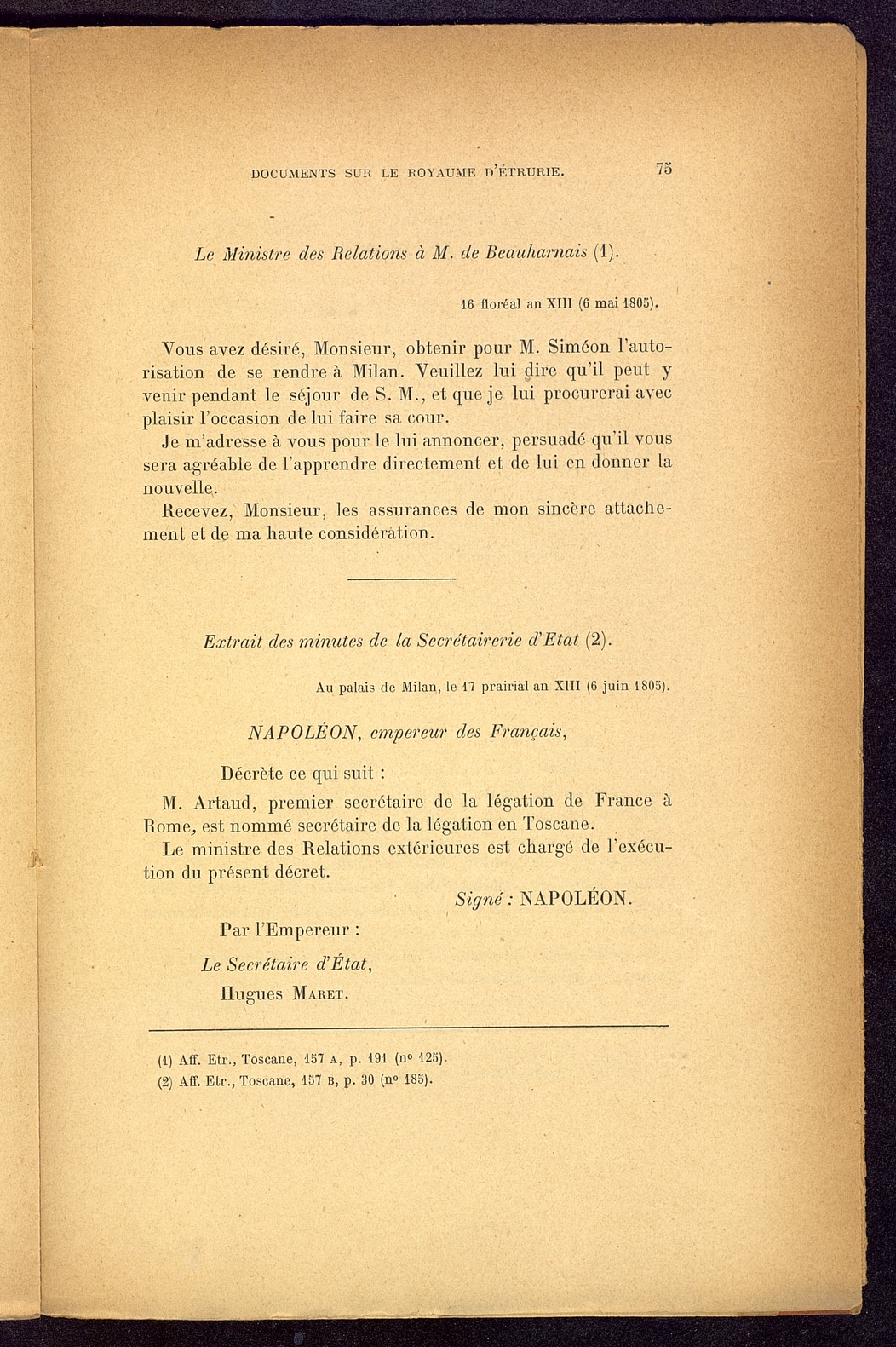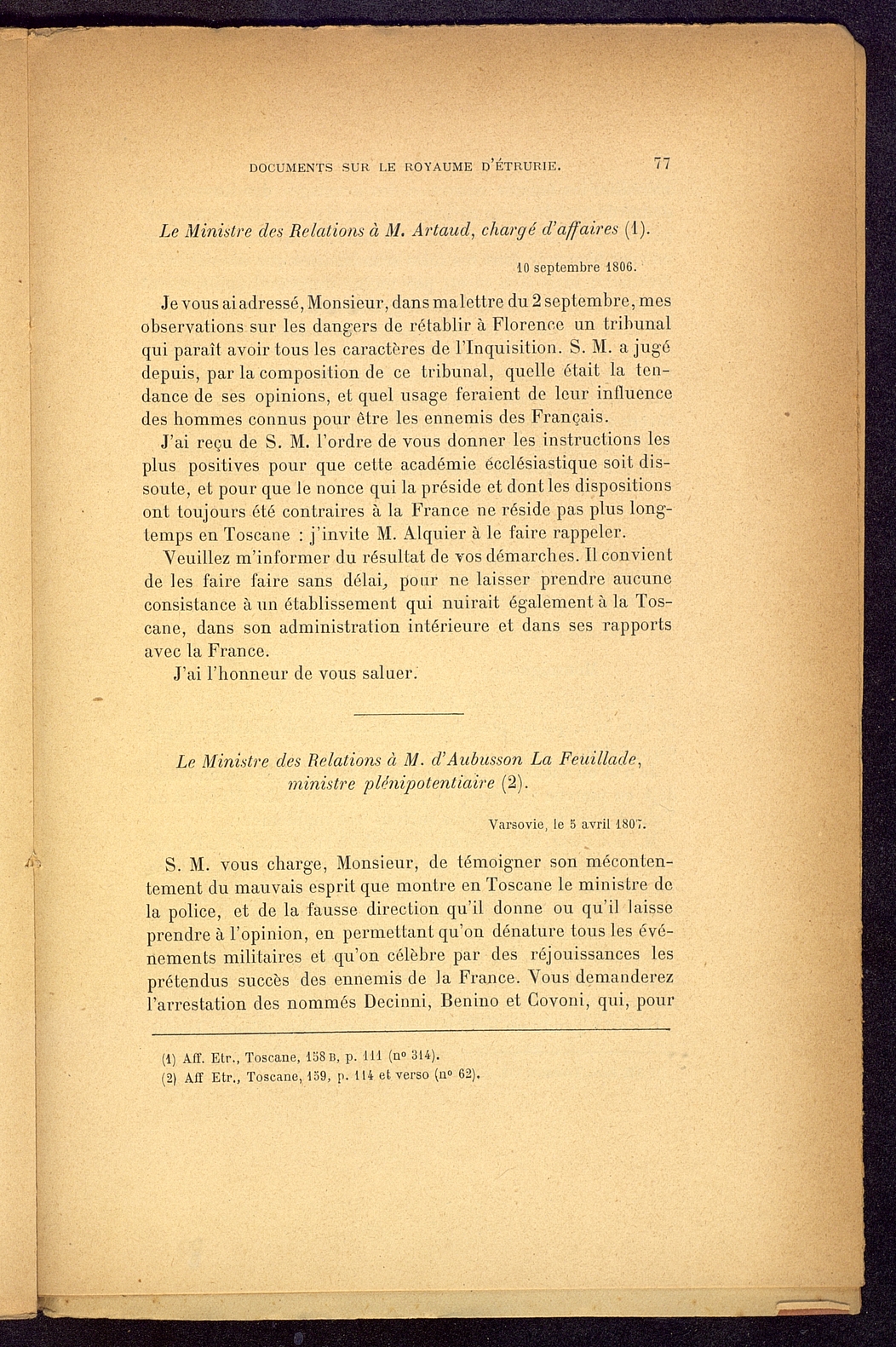 Titolo: Documents sur le Royaume d'Etrurie (1801-1807)