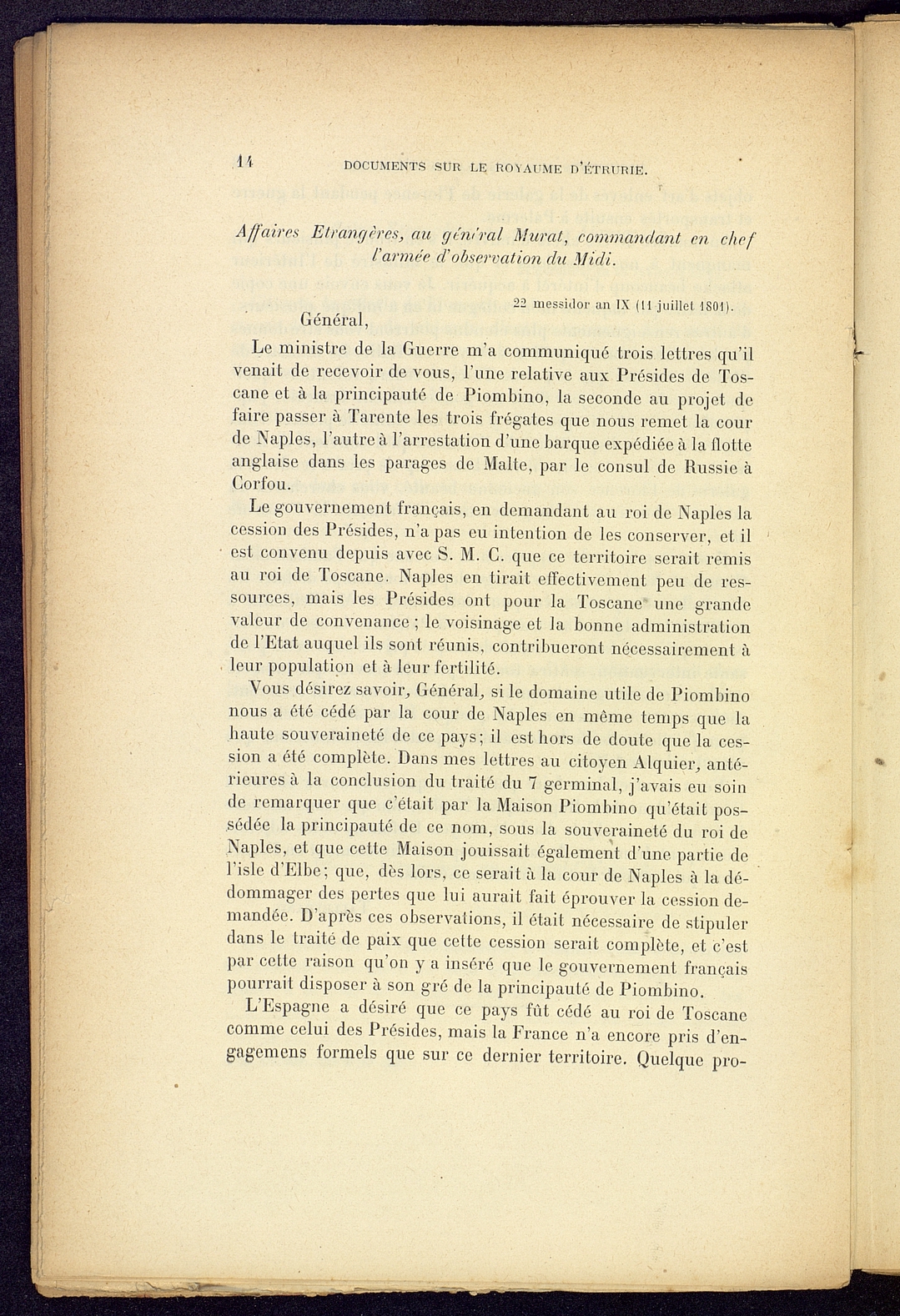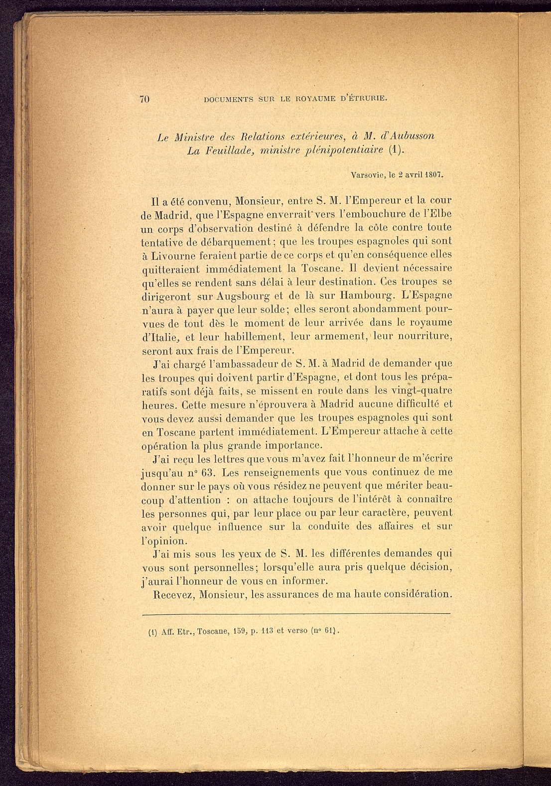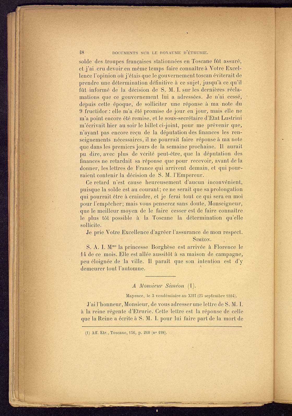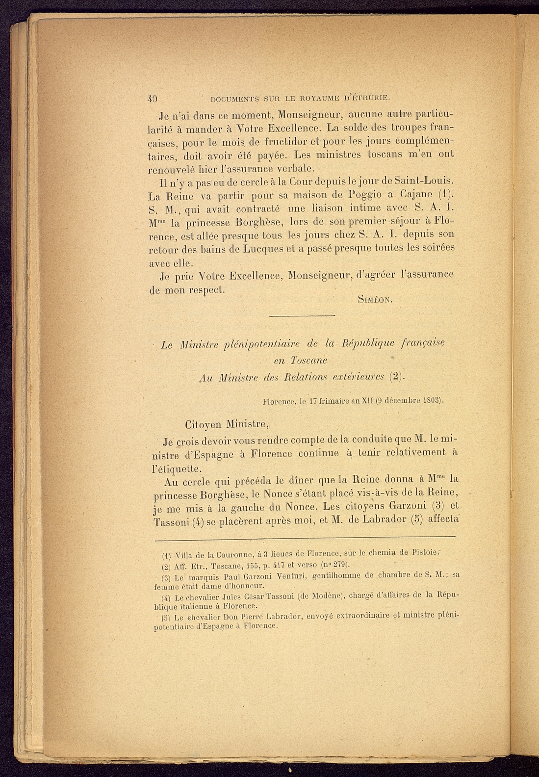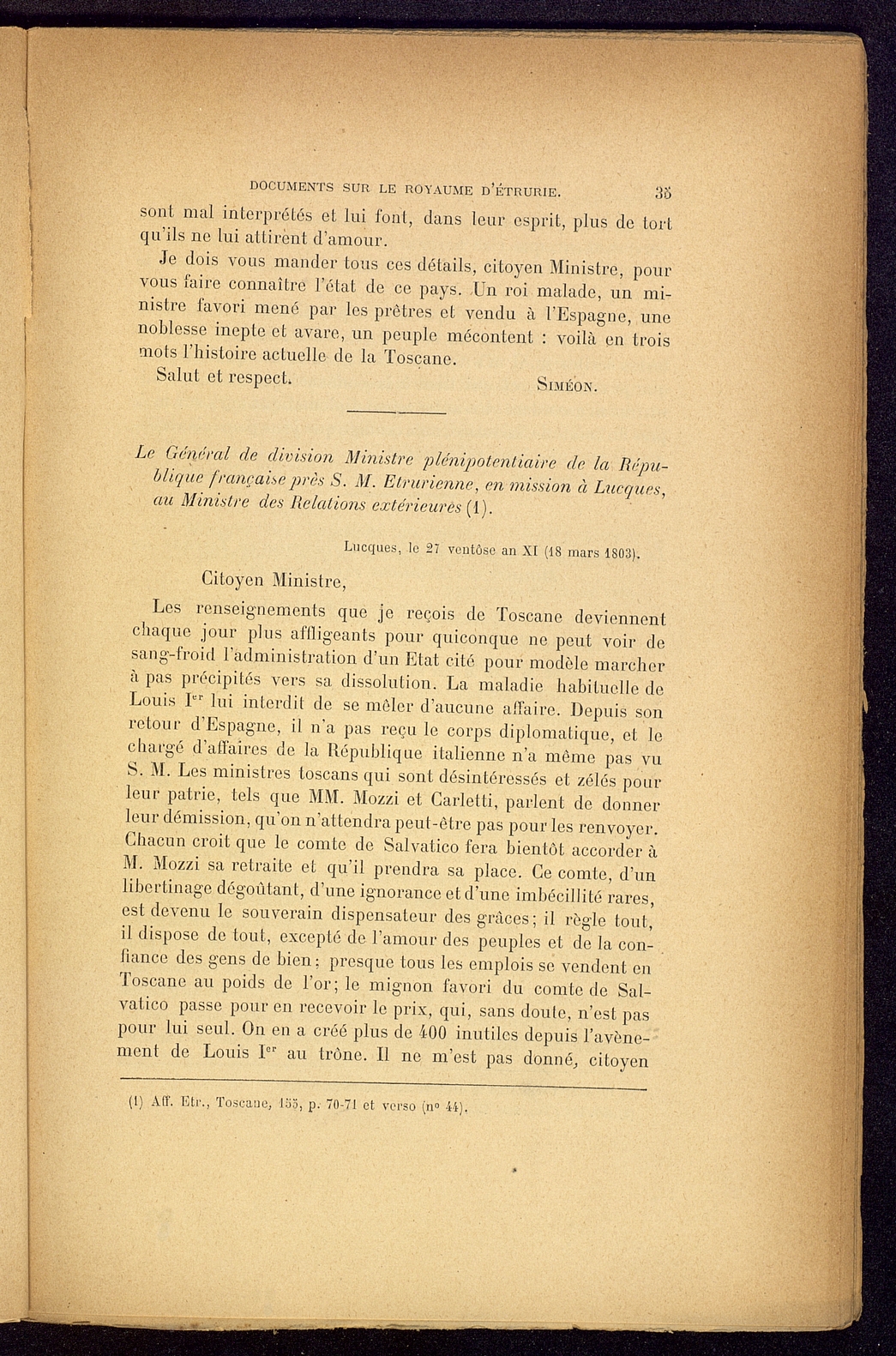 Titolo: Documents sur le Royaume d'Etrurie (1801-1807)