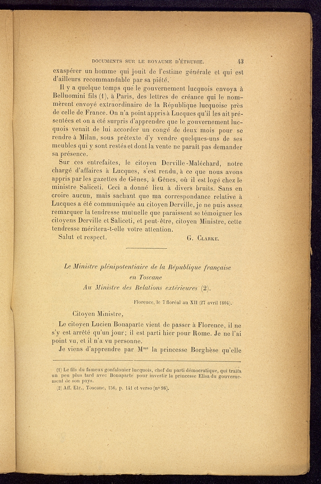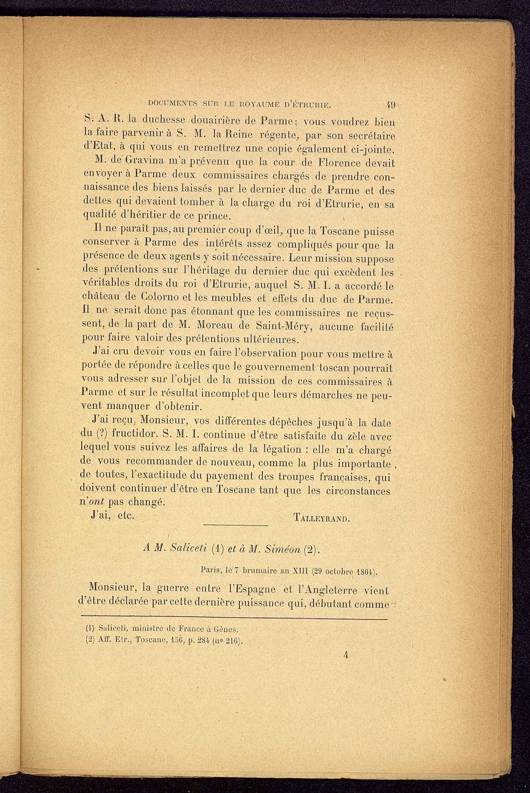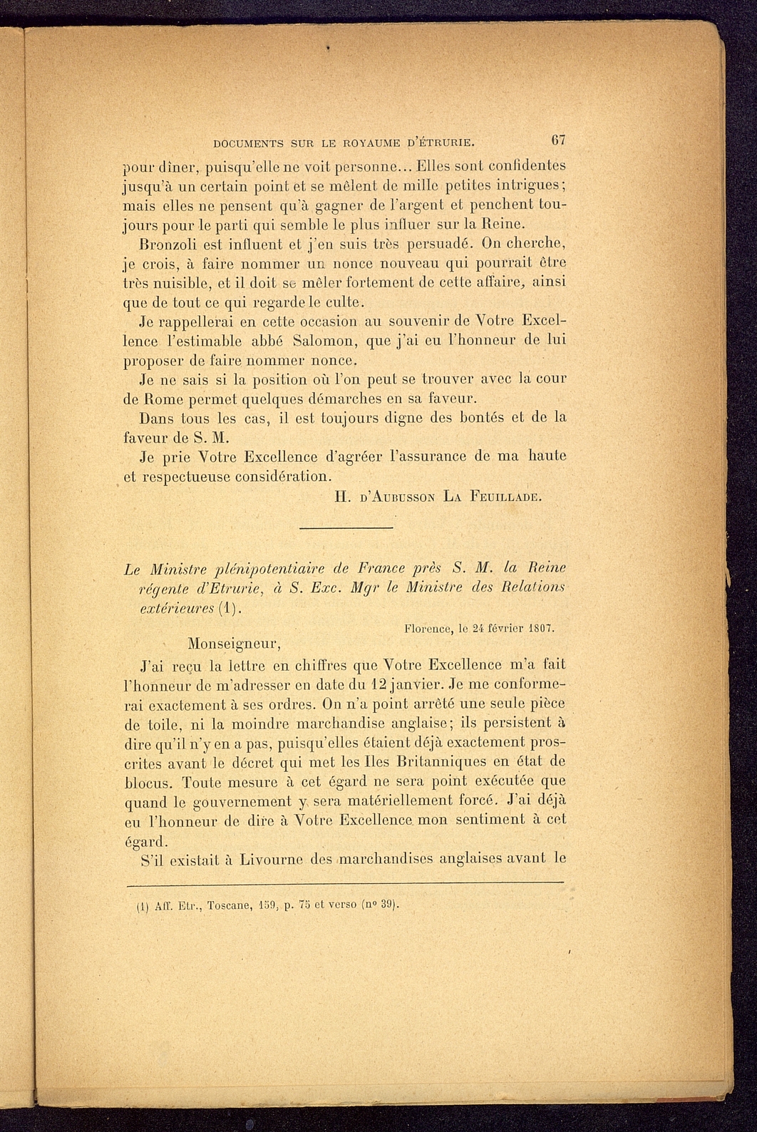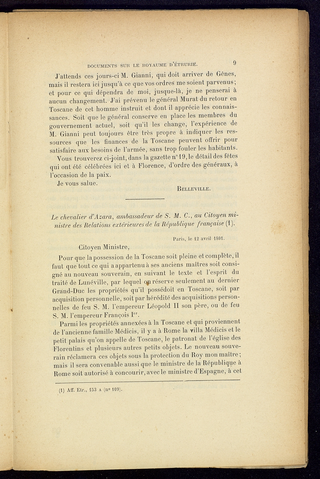 Titolo: Documents sur le Royaume d'Etrurie (1801-1807)