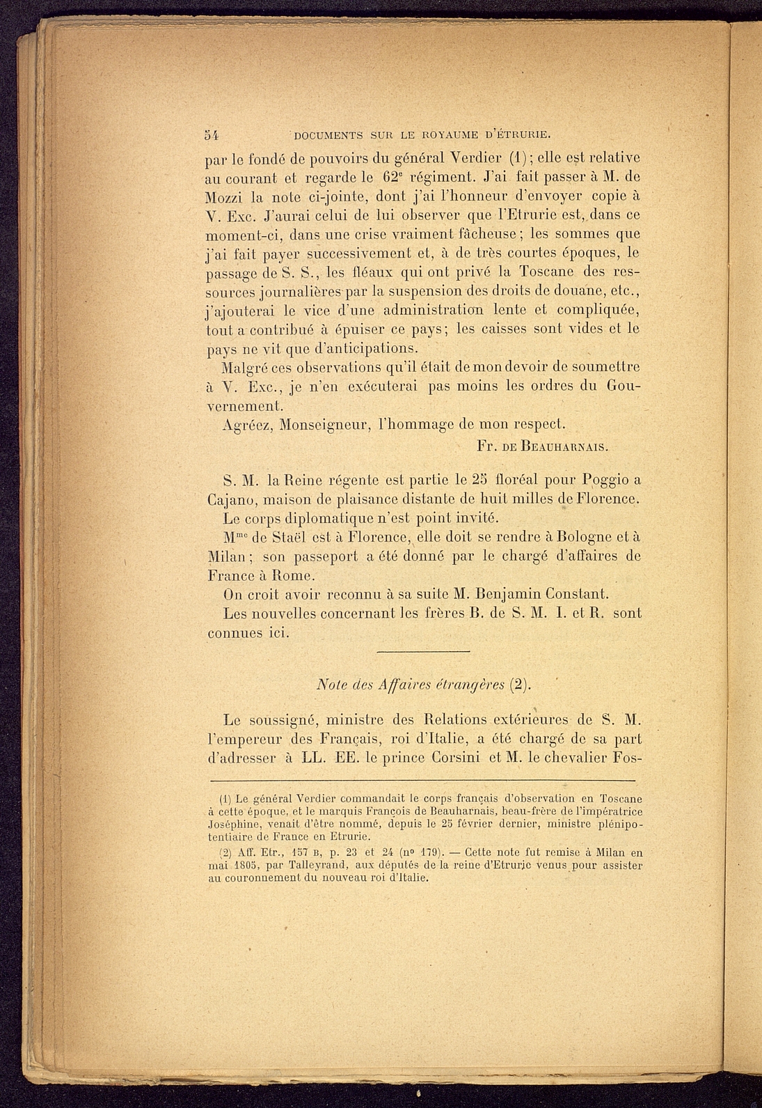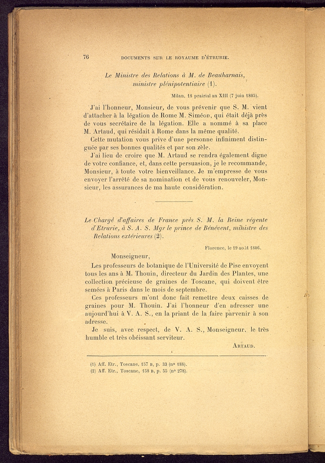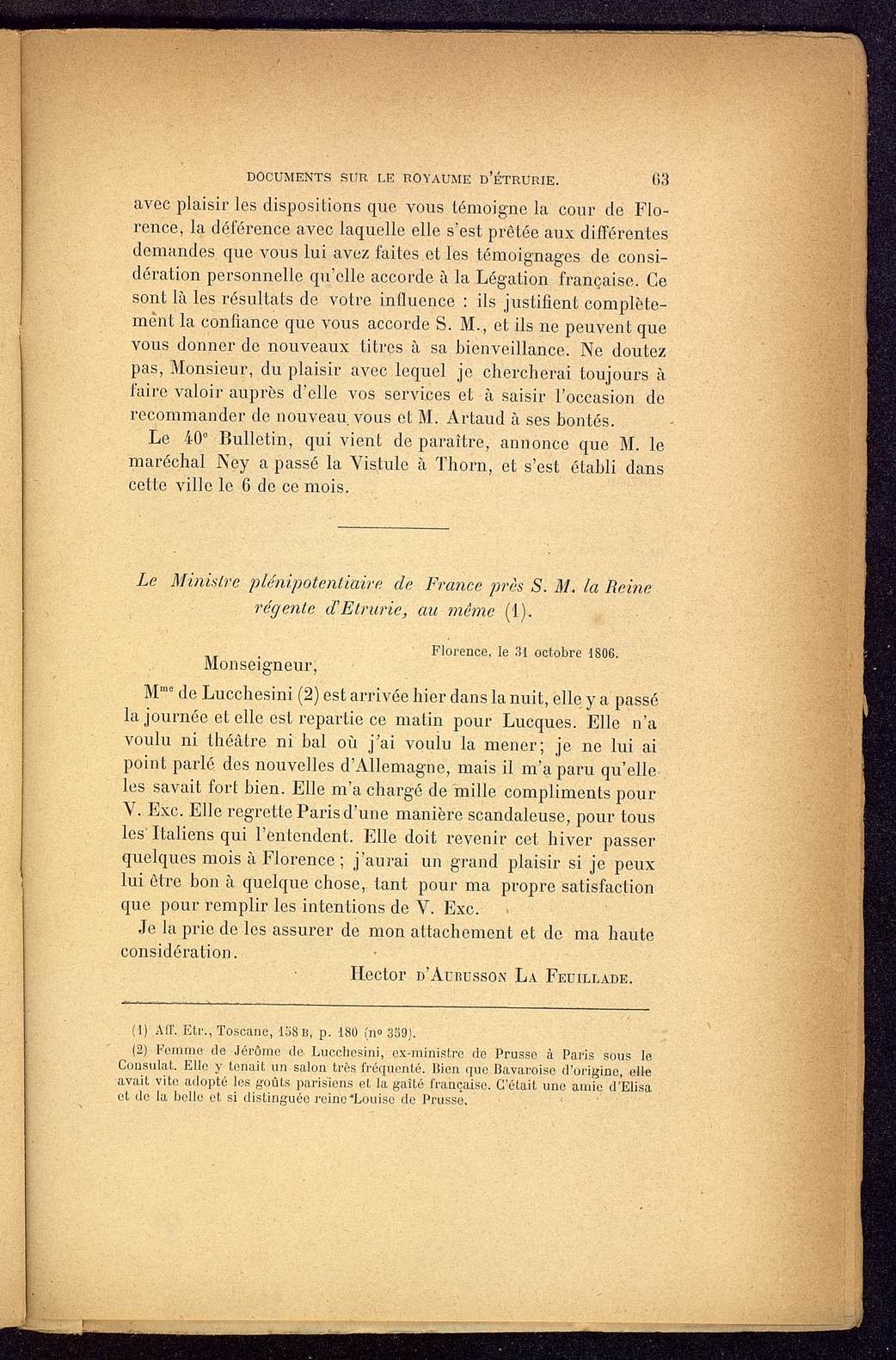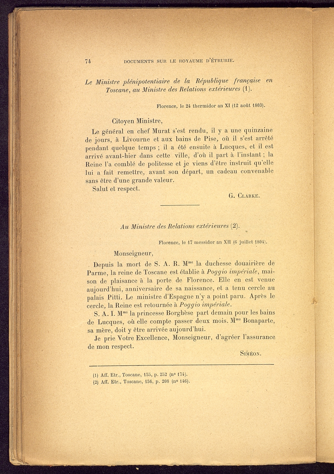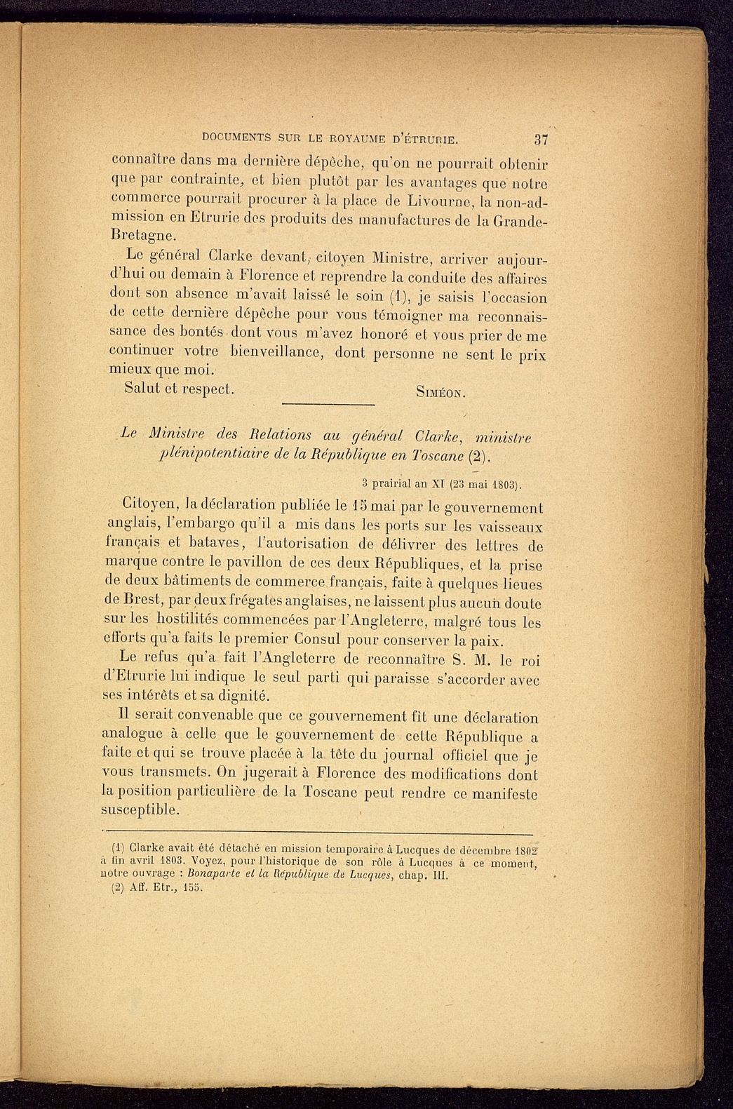 Titolo: Documents sur le Royaume d'Etrurie (1801-1807)